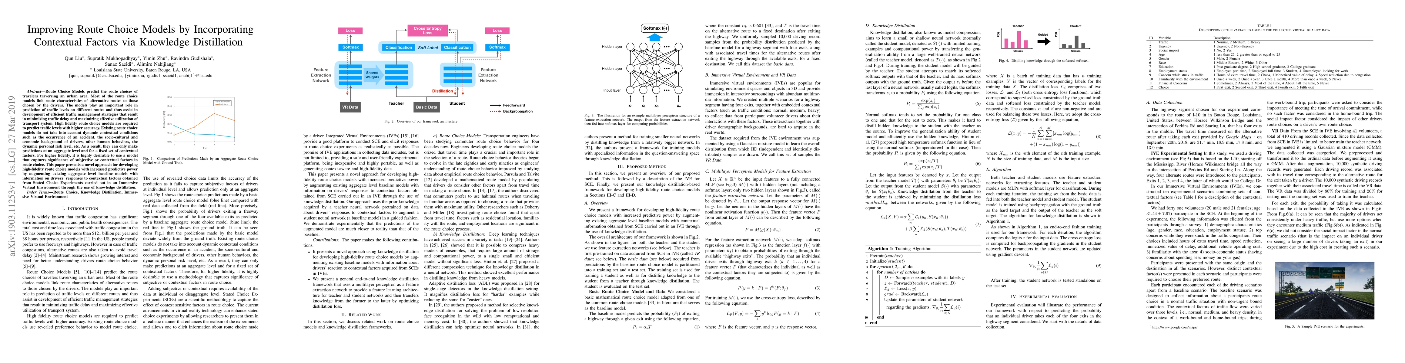 This paper proposes a method to enhance route choice models by incorporating dynamic contextual factors using knowledge distillation, aiming to improve prediction accuracy and efficiency in traffic management. The approach leverages data from immersive virtual environments to capture drivers' responses to contextual influences, thereby achieving higher fidelity in route choice predictions.