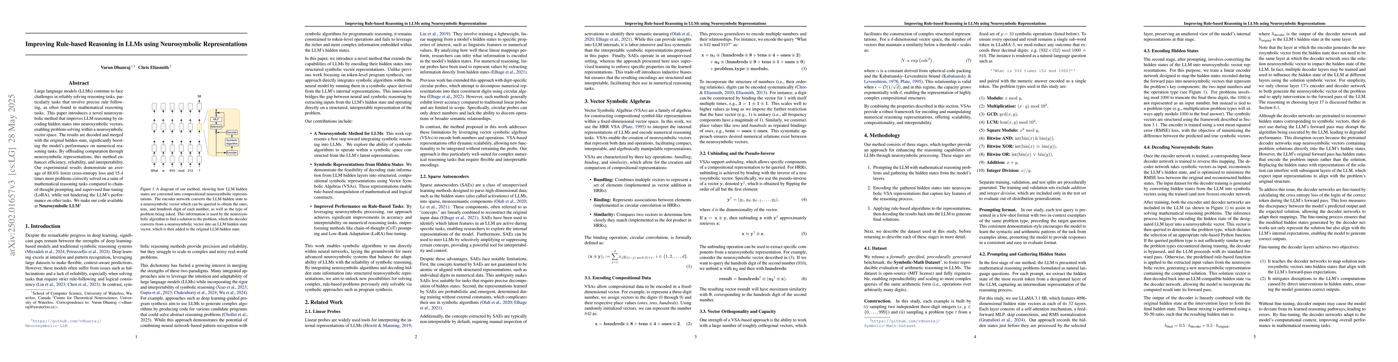 The paper introduces a novel neurosymbolic method that enhances rule-based reasoning in large language models (LLMs) by encoding hidden states into neurosymbolic vectors, which are then decoded and merged with the original hidden state for improved performance on numerical reasoning tasks.