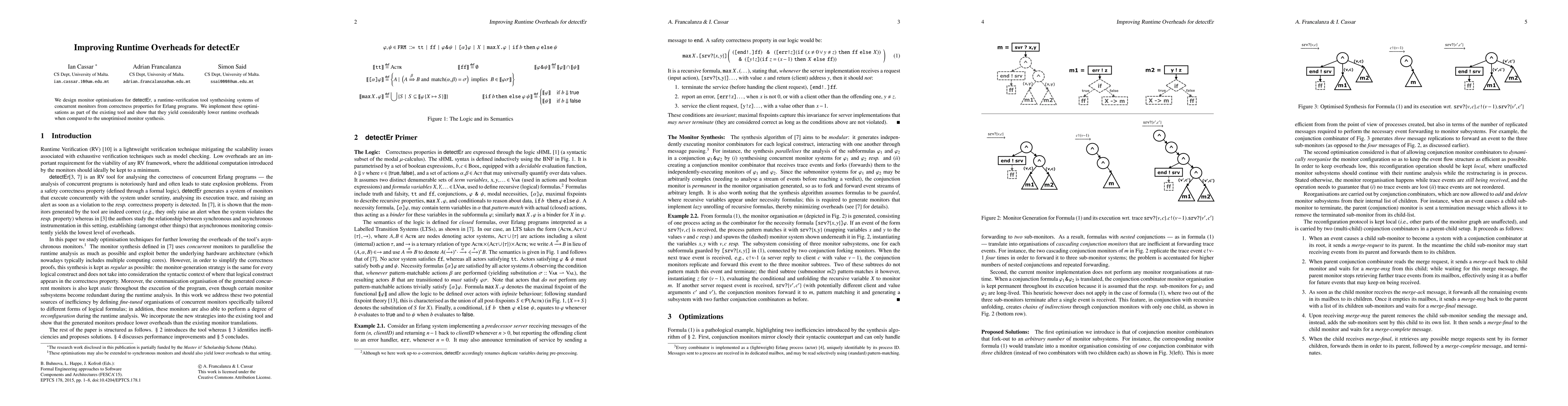We design monitor optimisations for detectEr, a runtime-verification tool synthesising systems of concurrent monitors from correctness properties for Erlang programs. We implement these optimisations as part of the existing tool and show that they yield considerably lower runtime overheads when compared to the unoptimised monitor synthesis.
