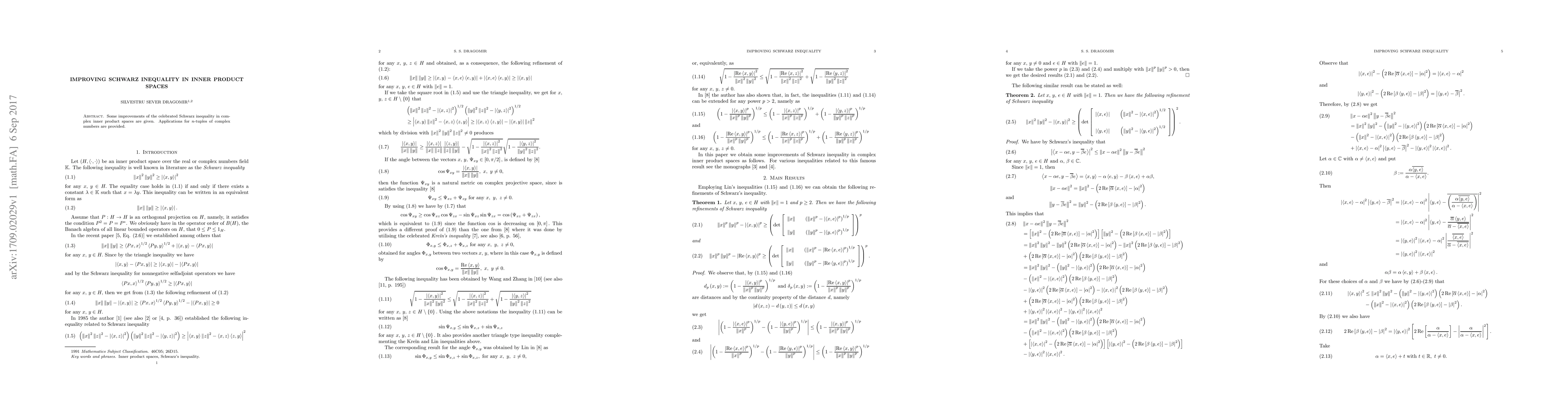 Summary: This paper presents refined versions of the Schwarz inequality in complex inner product spaces and demonstrates their applications to n-tuples of complex numbers, enhancing the understanding of these mathematical relationships.