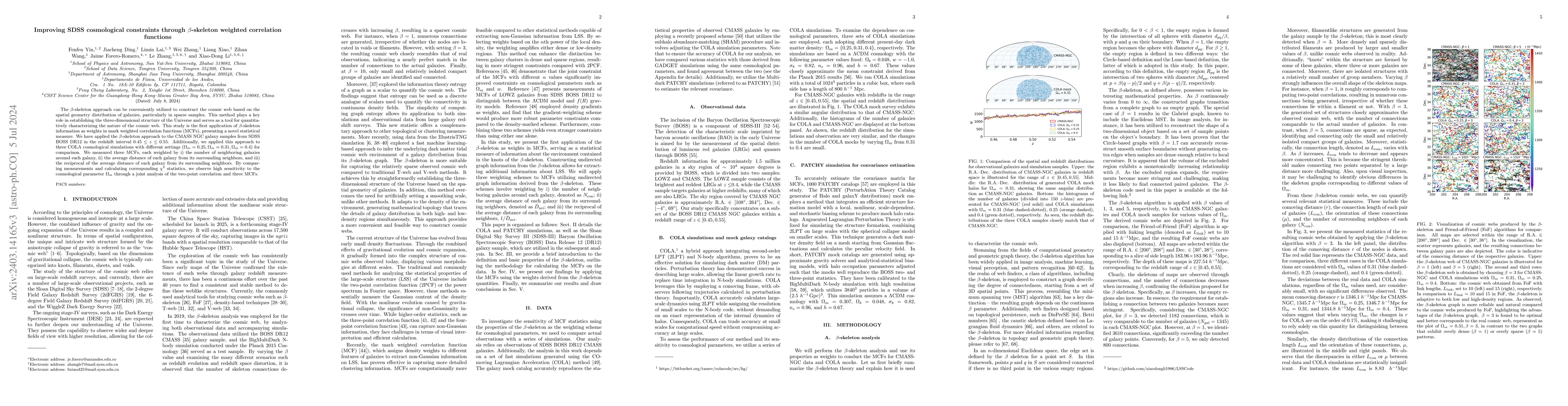 This study introduces the $\beta$-skeleton weighted correlation functions to enhance cosmological constraints from SDSS galaxy samples, showing high sensitivity to the matter density parameter $\Omega_m$. The approach was applied to CMASS NGC galaxy data and COLA simulations to analyze the cosmic web's structure.