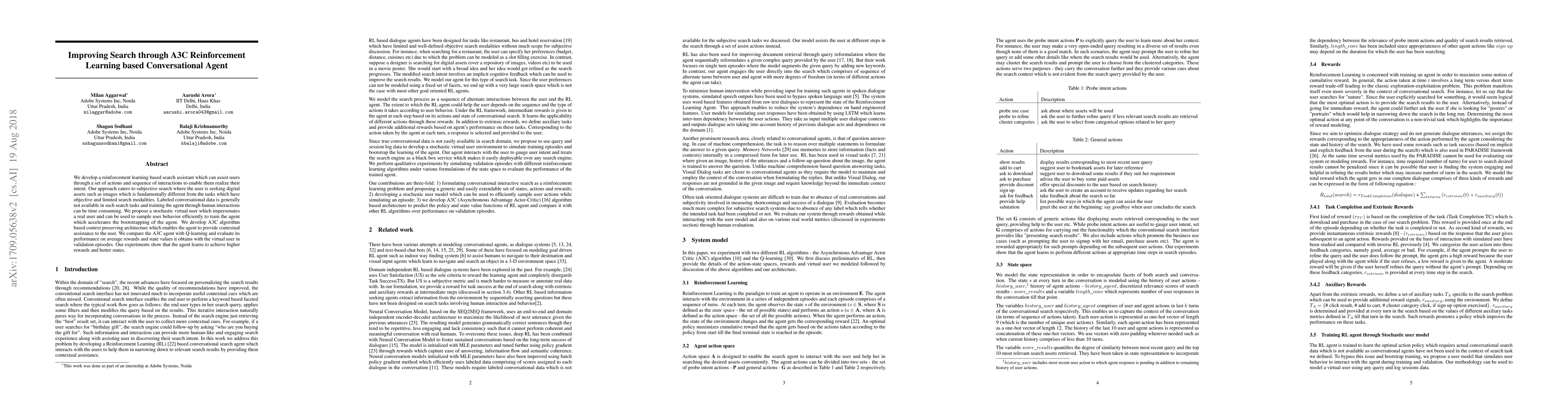 This paper develops a reinforcement learning-based search assistant using an A3C algorithm to assist users in subjective searches for digital assets like images. To address the challenge of limited labeled data, the authors propose a stochastic virtual user for efficient training, which accelerates the agent's bootstrapping. Experimental results show that the A3C agent outperforms Q-learning in achieving higher rewards and better states.