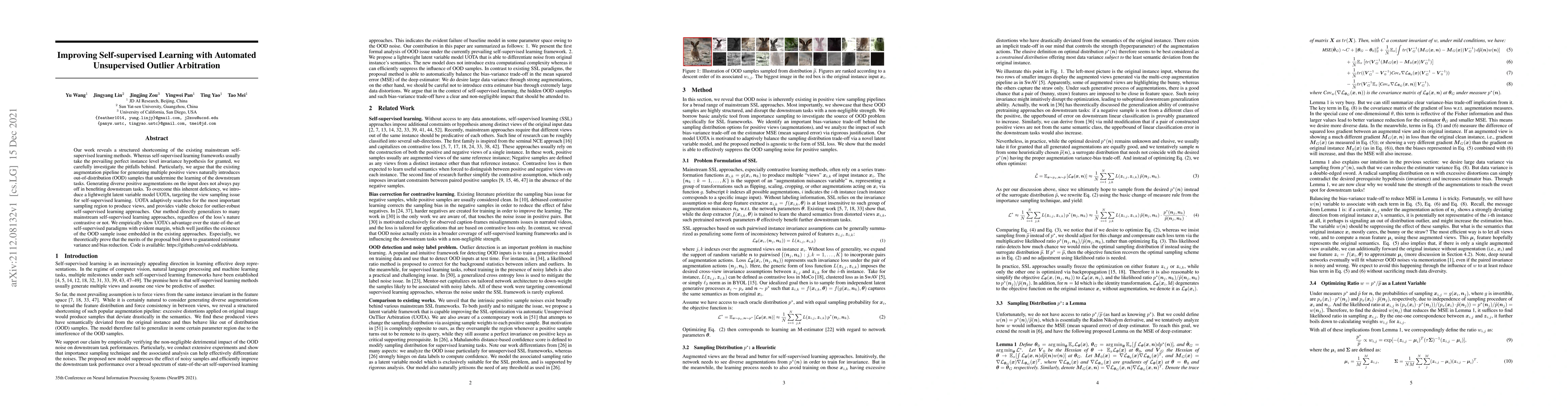 This paper identifies a flaw in existing self-supervised learning methods that generate out-of-distribution samples via augmentation, undermining downstream task performance. It proposes UOTA, a lightweight model that adaptively selects important sampling regions to mitigate the OOD issue, demonstrating superior empirical results and theoretically proving variance and bias reduction benefits.