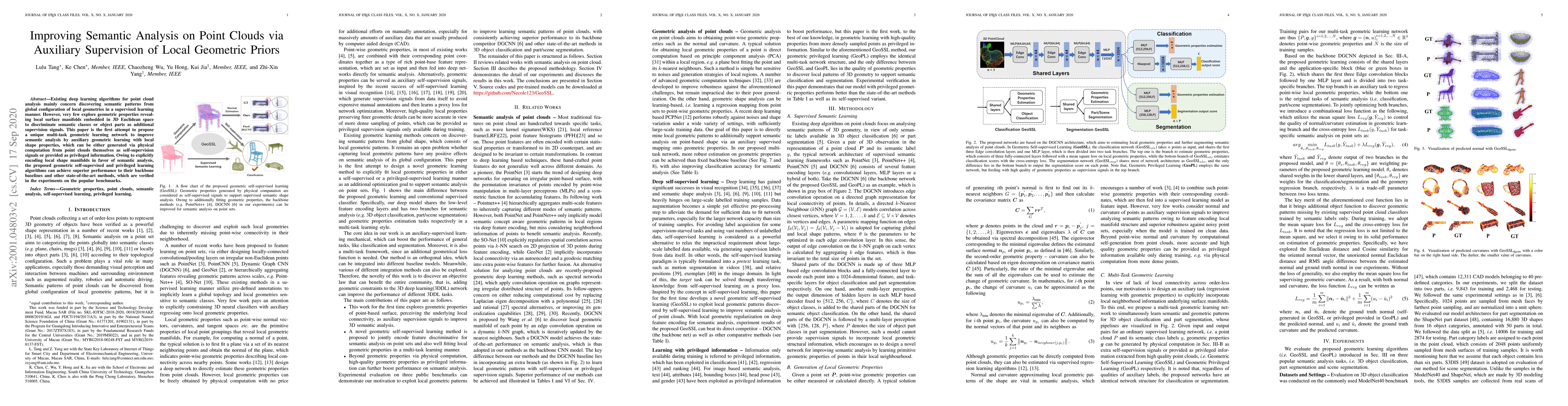This paper introduces a novel multi-task learning network that enhances semantic analysis of point clouds by incorporating auxiliary geometric priors derived from local shape properties. This approach, which can utilize self-supervised signals or privileged information, significantly outperforms existing methods on benchmark datasets.