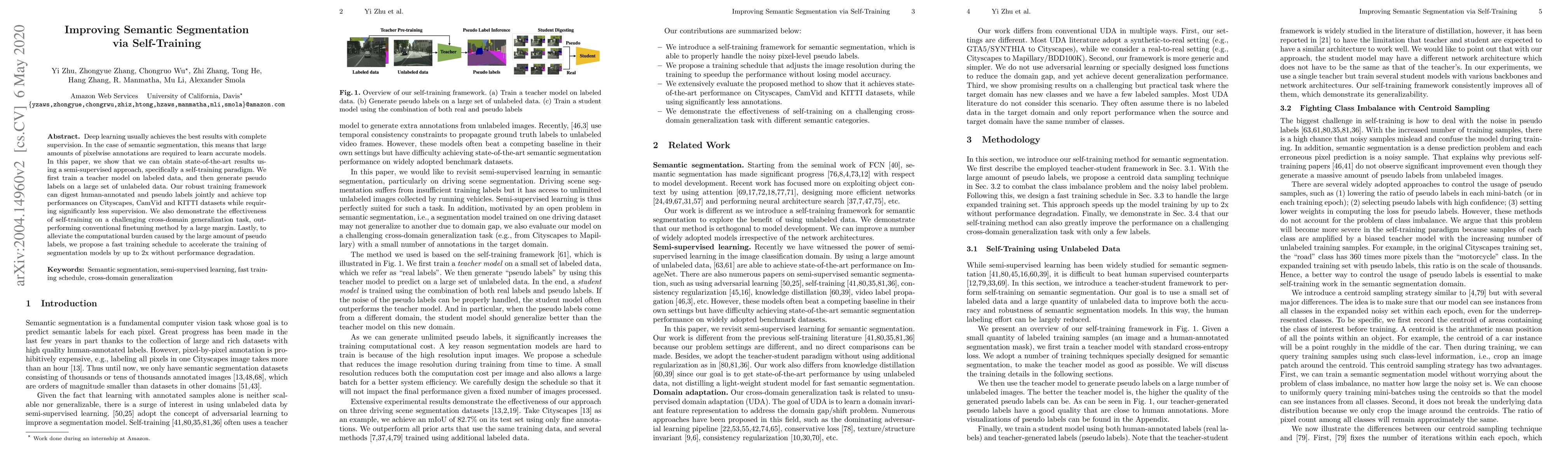 Researchers show that semi-supervised self-training can achieve state-of-the-art results in semantic segmentation with significantly less supervision than traditional deep learning methods. This approach also enables fast training schedules to accelerate model training without compromising performance.