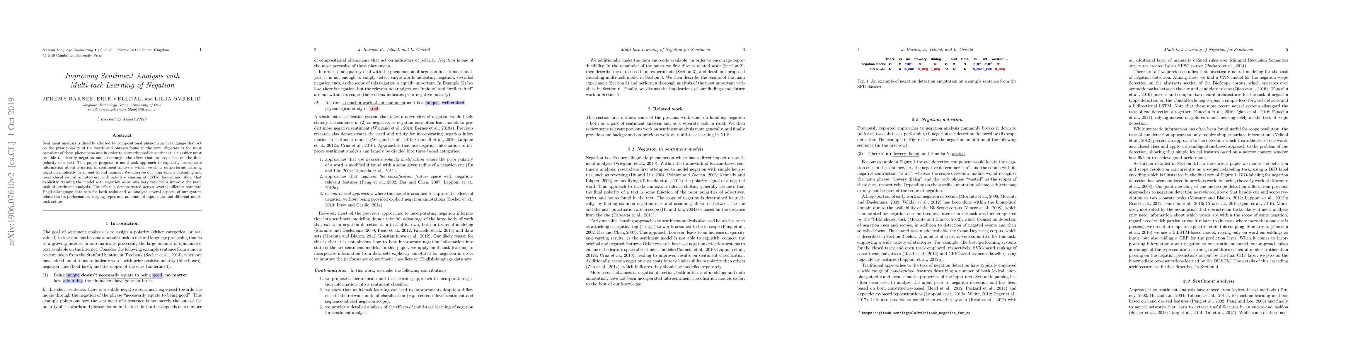This paper proposes a multi-task learning approach to improve sentiment analysis by explicitly incorporating negation handling. A cascading neural architecture with selective LSTM layers shows better performance than implicit negation learning, demonstrating enhanced sentiment analysis across various datasets.