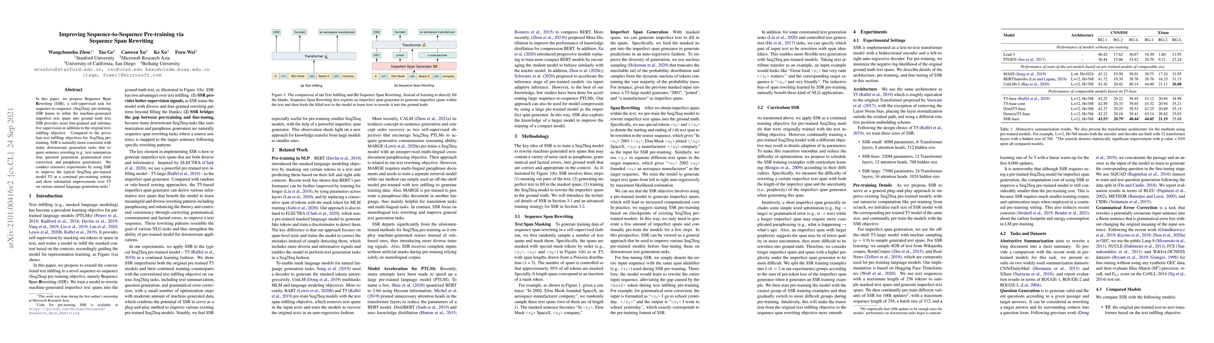 This paper proposes Sequence Span Rewriting (SSR) as a self-supervised pre-training method for sequence-to-sequence models, which improves fine-grained learning signals by having the model rewrite imperfect spans to ground truth. Experiments show that SSR significantly enhances seq2seq pre-training, particularly benefiting small-size models when paired with a powerful span generator.