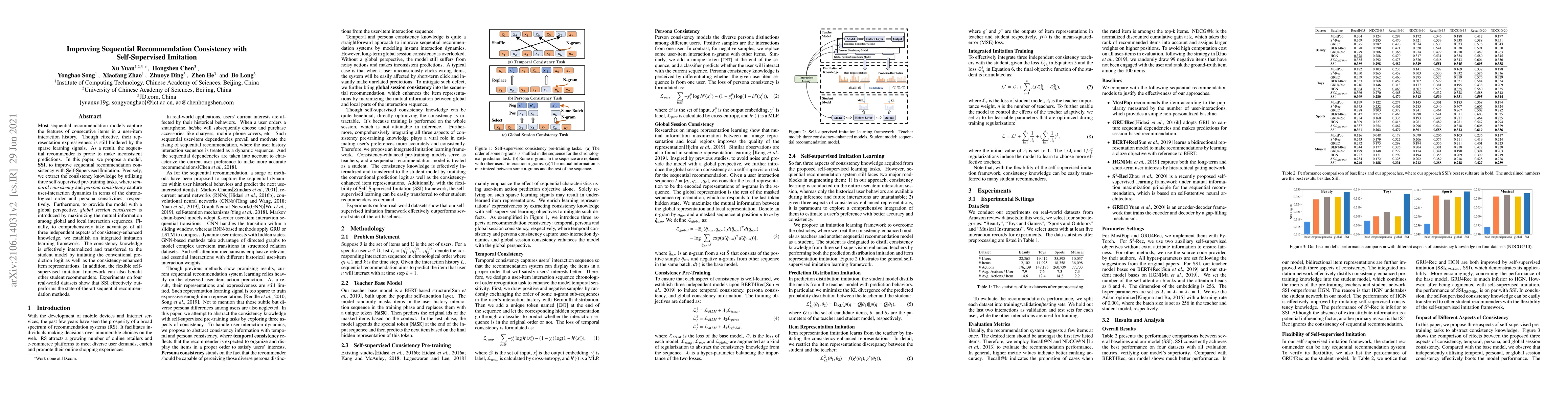 This paper proposes SSI, a self-supervised imitation model to enhance sequential recommendation consistency by leveraging temporal, persona, and global session consistency through pre-training tasks. The integrated framework effectively transfers consistency knowledge to improve prediction consistency, outperforming state-of-the-art methods on four datasets.