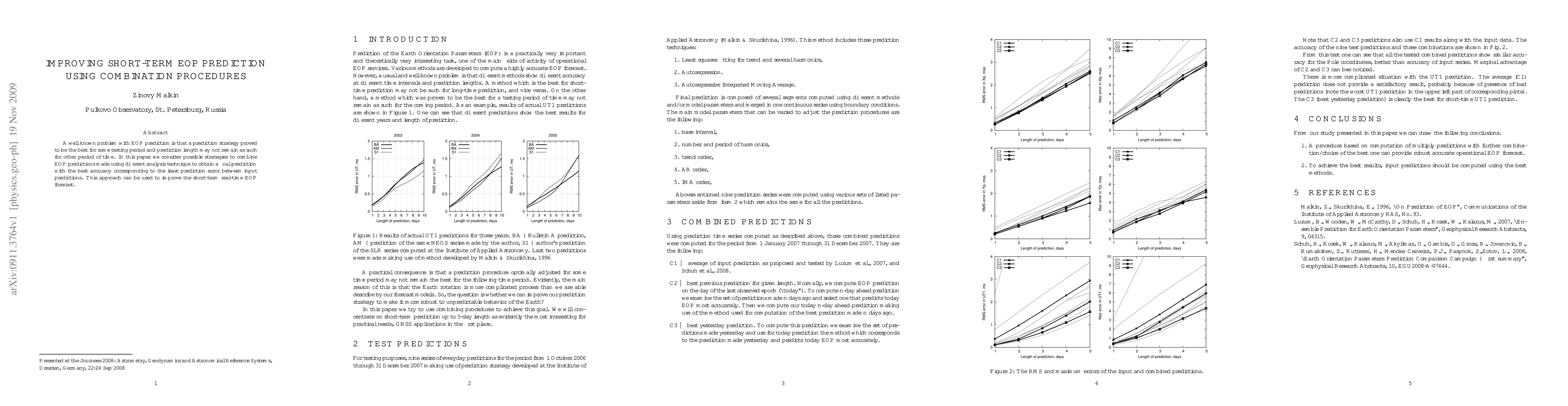 This paper explores combination procedures to enhance short-term Earth Orientation Parameter (EOP) predictions by integrating various analysis techniques, aiming to achieve the most accurate forecast with minimal prediction error. The proposed method seeks to improve real-time EOP forecasts.