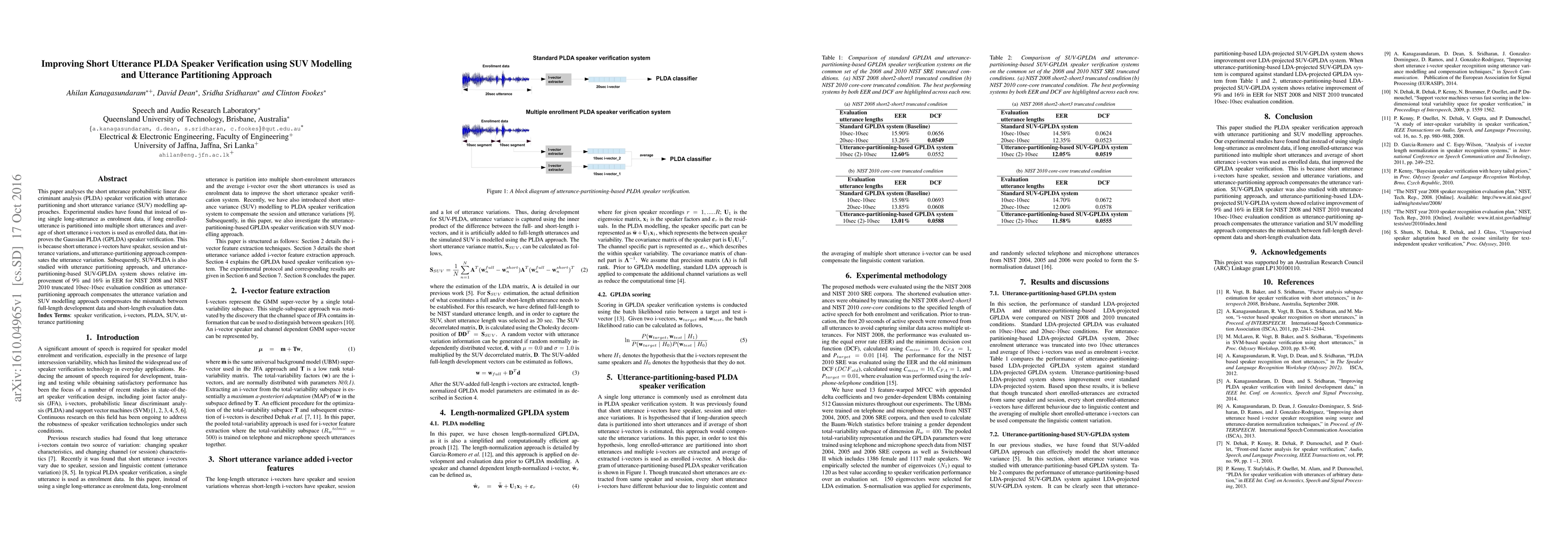The research introduces a novel approach to improving short utterance PLDA speaker verification using utterance partitioning and SUV modelling.