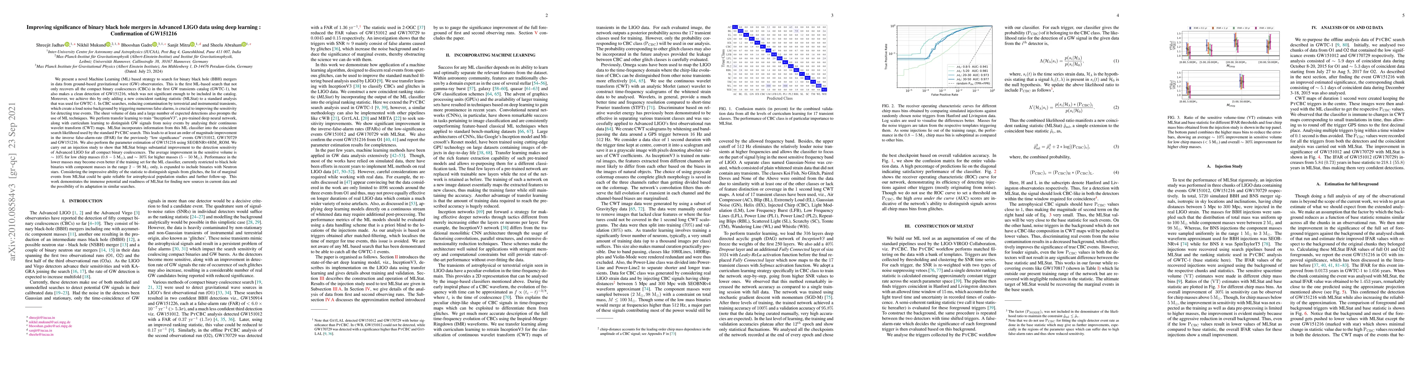 We present a novel Machine Learning (ML) based strategy to search for binary black hole (BBH) mergers in data from ground-based gravitational wave (GW) observatories. This is the first ML-based search that not only recovers all the compact binary coalescences (CBCs) in the first GW transients catalog (GWTC-1), but also makes a clean detection of GW151216 by only adding a new coincident ranking statistic (MLStat) to a standard analysis that was used for GWTC-1. In CBC searches, reducing contamination by terrestrial and instrumental transients, which create a loud noise background by triggering numerous false alarms, is crucial to improving the sensitivity for detecting true events. The sheer volume of data and a large number of expected detections also prompts the use of ML techniques. We perform transfer learning to train "InceptionV3", a pre-trained deep neural network, along with curriculum learning to distinguish GW signals from noisy events by analysing their continuous wavelet transform (CWT) maps. MLStat incorporates information from this ML classifier into the coincident search likelihood used by the standard PyCBC search. This leads to at least an order of magnitude improvement in the inverse false-alarm-rate (IFAR) for the previously "low significance" events GW151012, GW170729 and GW151216. We also perform the parameter estimation of GW151216 using SEOBNRv4HM_ROM. We carry out an injection study to show that MLStat brings substantial improvement to the detection sensitivity of Advanced LIGO for all compact binary coalescences. The average improvement in the sensitive volume is ~10% for low chirp masses (0.8-5 Msun), and ~30% for higher masses (5-50 Msun). This work demonstrates the immense potential and readiness of MLStat for finding new sources in current data and the possibility of its adaptation in similar searches.