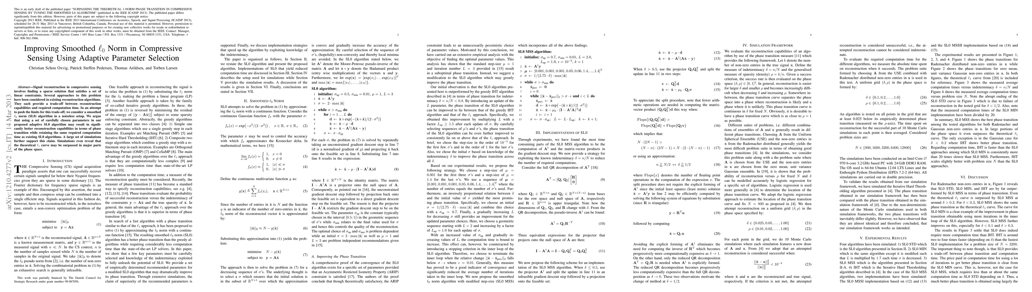 Signal reconstruction in compressive sensing involves finding a sparse solution that satisfies a set of linear constraints. Several approaches to this problem have been considered in existing reconstruction algorithms. They each provide a trade-off between reconstruction capabilities and required computation time. In an attempt to push the limits for this trade-off, we consider a smoothed l0 norm (SL0) algorithm in a noiseless setup. We argue that using a set of carefully chosen parameters in our proposed adaptive SL0 algorithm may result in significantly better reconstruction capabilities in terms of phase transition while retaining the same required computation time as existing SL0 algorithms. A large set of simulations further support this claim. Simulations even reveal that the theoretical l1 curve may be surpassed in major parts of the phase space.