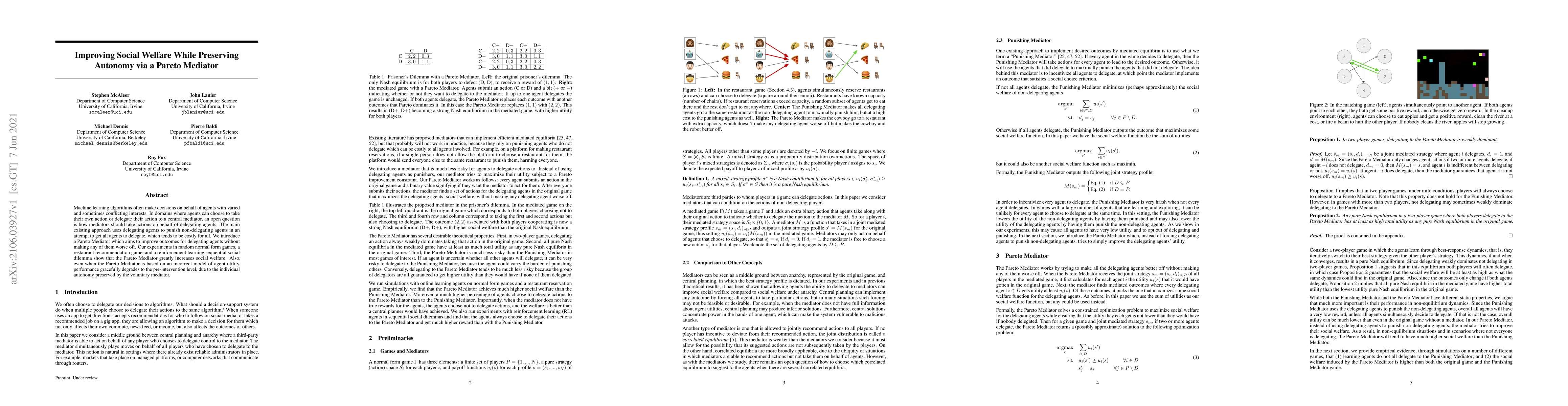 A new mediator approach called Pareto Mediator improves social welfare without harming delegating agents in group decision-making games. It increases social welfare while preserving individual autonomy.