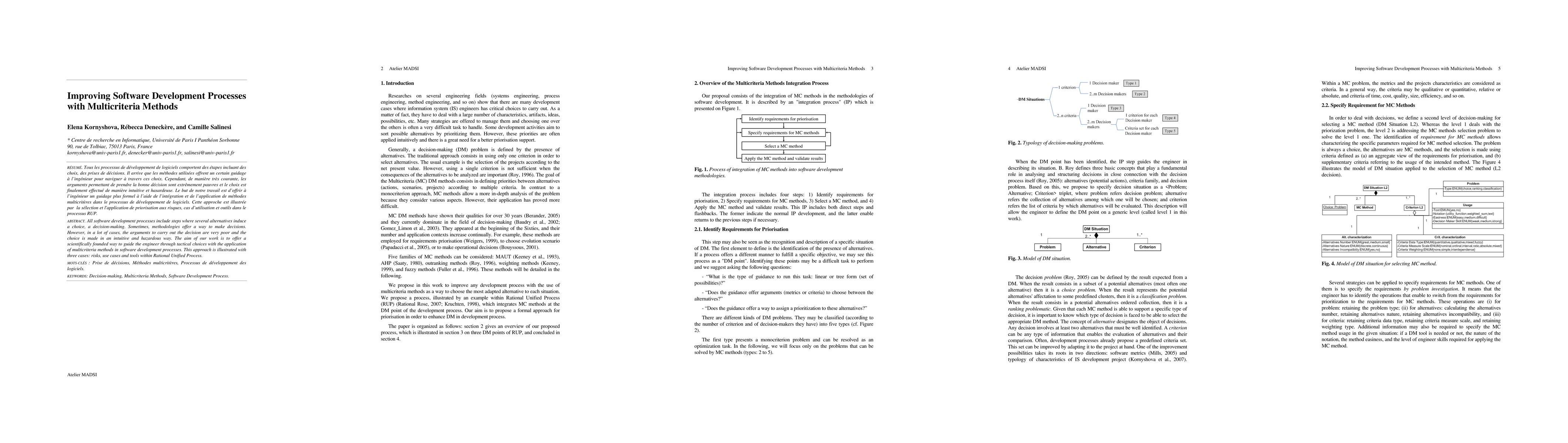 All software development processes include steps where several alternatives induce a choice, a decision-making. Sometimes, methodologies offer a way to make decisions. However, in a lot of cases, the arguments to carry out the decision are very poor and the choice is made in an intuitive and hazardous way. The aim of our work is to offer a scientifically founded way to guide the engineer through tactical choices with the application of multicriteria methods in software development processes. This approach is illustrated with three cases: risks, use cases and tools within Rational Unified Process.