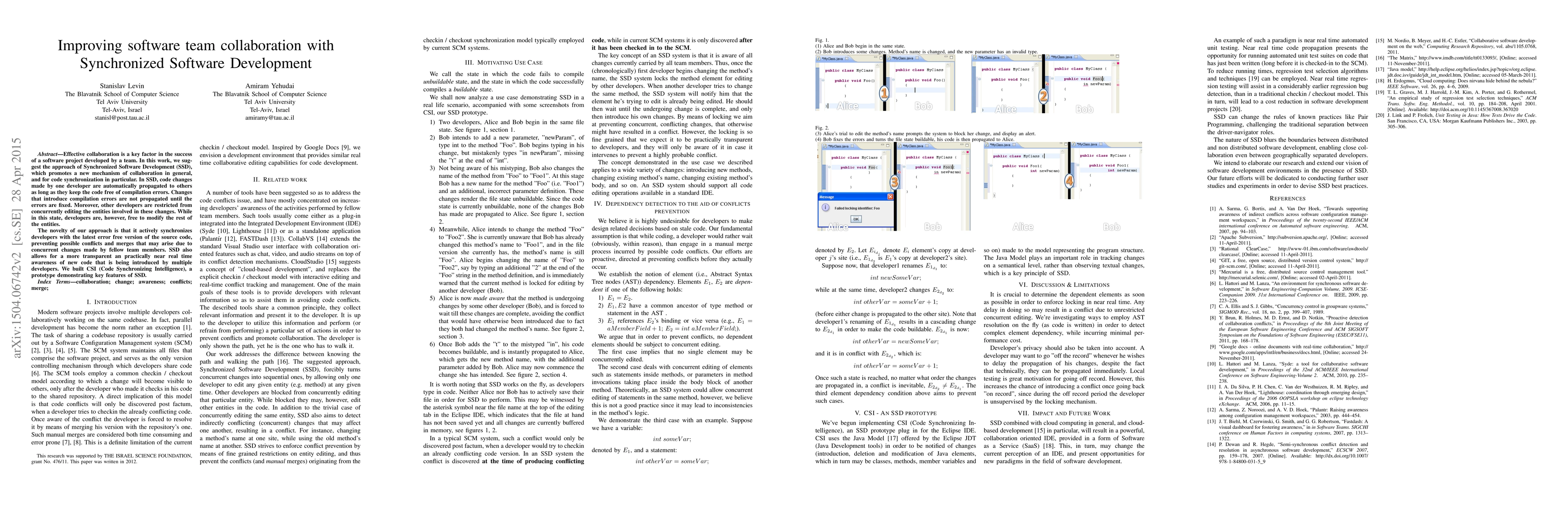 This paper proposes Synchronized Software Development (SSD), a collaborative approach that automatically propagates error-free code changes to team members, preventing conflicts and enhancing real-time awareness. A prototype, CSI, demonstrates SSD's features, aiming to improve software team collaboration.
