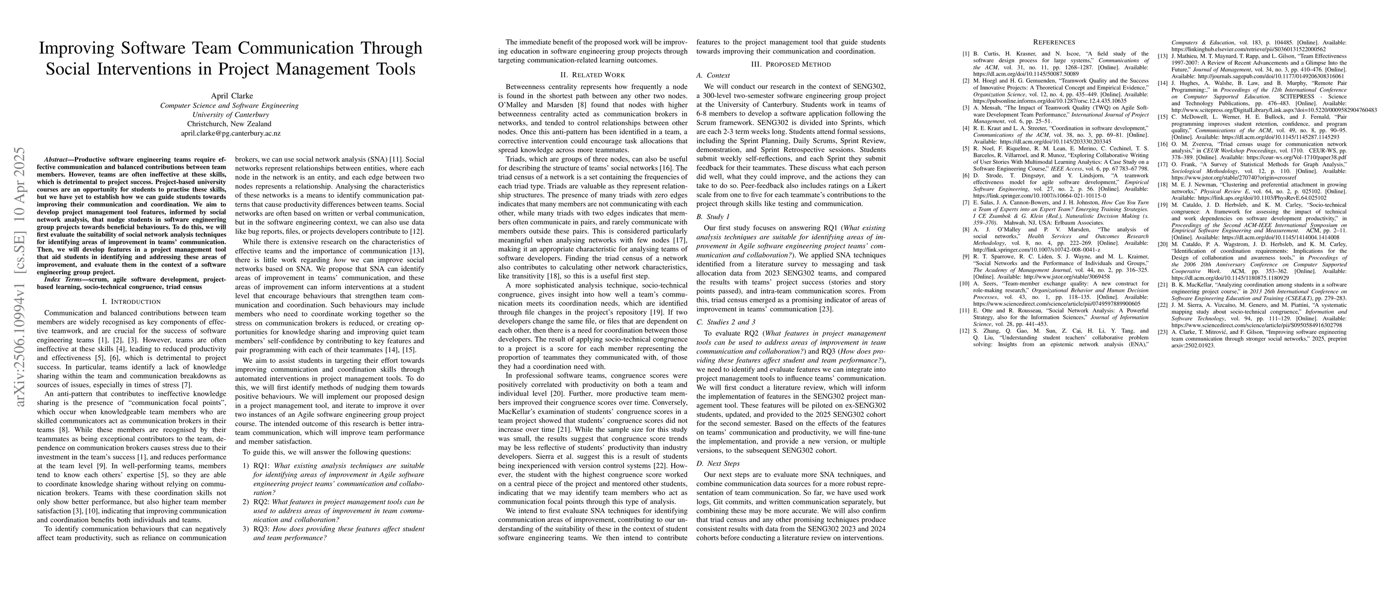 Productive software engineering teams require effective communication and balanced contributions between team members. However, teams are often ineffective at these skills, which is detrimental to project success. Project-based university courses are an opportunity for students to practise these skills, but we have yet to establish how we can guide students towards improving their communication and coordination. We aim to develop project management tool features, informed by social network analysis, that nudge students in software engineering group projects towards beneficial behaviours. To do this, we will first evaluate the suitability of social network analysis techniques for identifying areas of improvement in teams' communication. Then, we will develop features in a project management tool that aid students in identifying and addressing these areas of improvement, and evaluate them in the context of a software engineering group project.