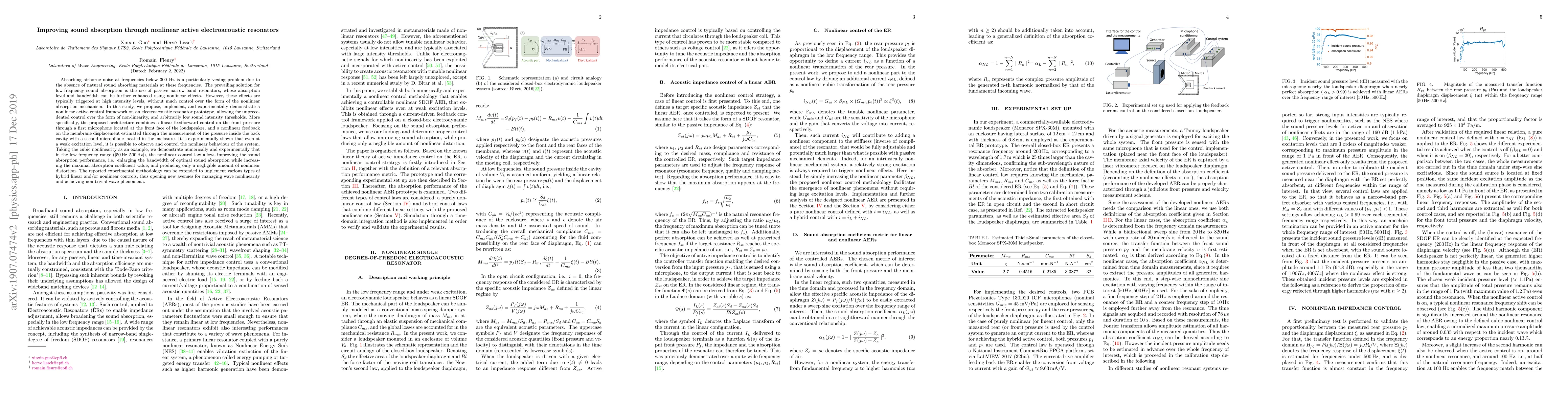 Absorbing airborne noise at frequencies below 300 Hz is a particularly vexing problem due to the absence of natural sound absorbing materials at these frequencies. The prevailing solution for low-frequency sound absorption is the use of passive narrow-band resonators, whose absorption level and bandwidth can be further enhanced using nonlinear effects. However, these effects are typically triggered at high intensity levels, without much control over the form of the nonlinear absorption mechanism. In this study, we propose, implement, and experimentally demonstrate a nonlinear active control framework on an electroacoustic resonator prototype, allowing for unprecedented control over the form of non-linearity, and arbitrarily low sound intensity thresholds. More specifically, the proposed architecture combines a linear feedforward control on the front pressure through a first microphone located at the front face of the loudspeaker, and a nonlinear feedback on the membrane displacement estimated through the measurement of the pressure inside the back cavity with a second microphone located in the enclosure. It is experimentally shown that even at a weak excitation level, it is possible to observe and control the nonlinear behaviour of the system. Taking the cubic nonlinearity as an example, we demonstrate numerically and experimentally that in the low frequency range ([50 Hz, 500 Hz]), the nonlinear control law allows improving the sound absorption performance, i.e. enlarging the bandwidth of optimal sound absorption while increasing the maximal absorption coefficient value, and producing only a negligible amount of nonlinear distortion. The reported experimental methodology can be extended to implement various types of hybrid linear and/or nonlinear controls, thus opening new avenues for managing wave nonlinearity and achieving non-trivial wave phenomena.