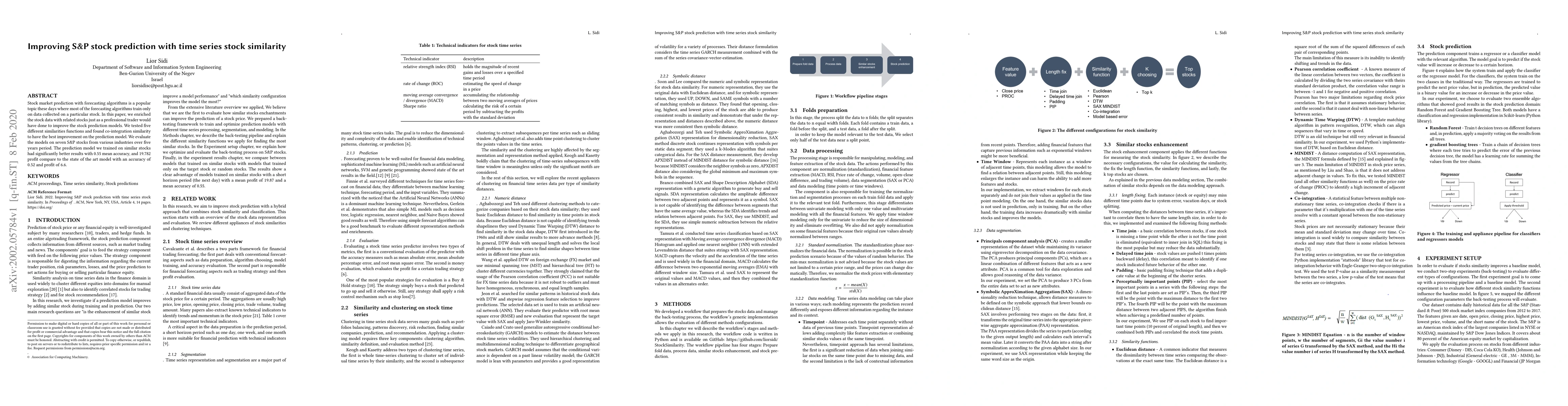 Using similar stocks to improve stock prediction models led to better results, with a mean accuracy of 0.55 and profit of 19.782 compared to the state-of-the-art model.