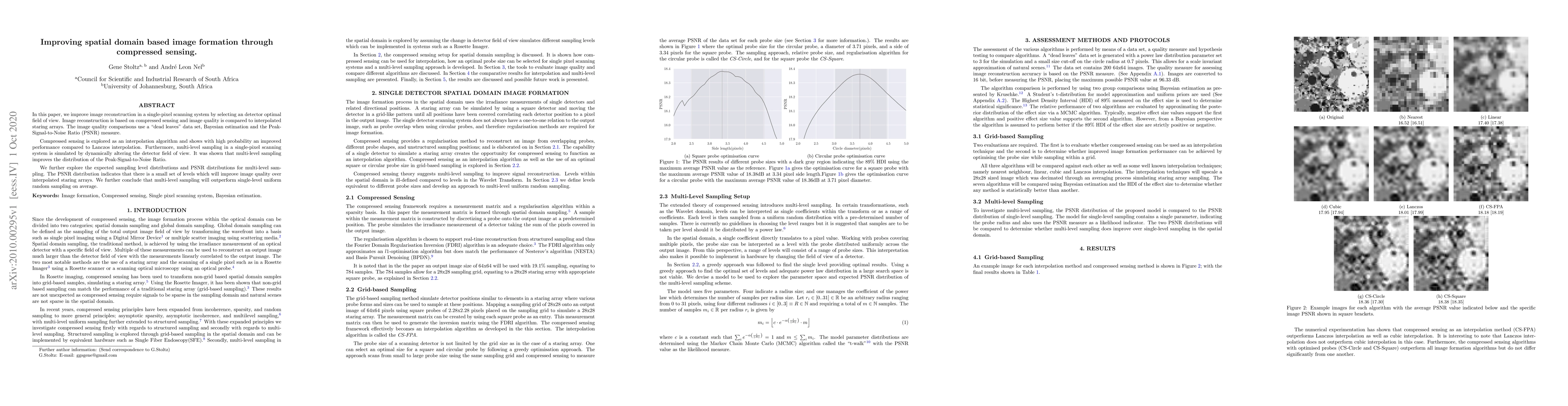 In this paper, we improve image reconstruction in a single-pixel scanning system by selecting an detector optimal field of view. Image reconstruction is based on compressed sensing and image quality is compared to interpolated staring arrays. The image quality comparisons use a "dead leaves" data set, Bayesian estimation and the Peak-Signal-to-Noise Ratio (PSNR) measure. Compressed sensing is explored as an interpolation algorithm and shows with high probability an improved performance compared to Lanczos interpolation. Furthermore, multi-level sampling in a single-pixel scanning system is simulated by dynamically altering the detector field of view. It was shown that multi-level sampling improves the distribution of the Peak-Signal-to-Noise Ratio. We further explore the expected sampling level distributions and PSNR distributions for multi-level sampling. The PSNR distribution indicates that there is a small set of levels which will improve image quality over interpolated staring arrays. We further conclude that multi-level sampling will outperform single-level uniform random sampling on average.
