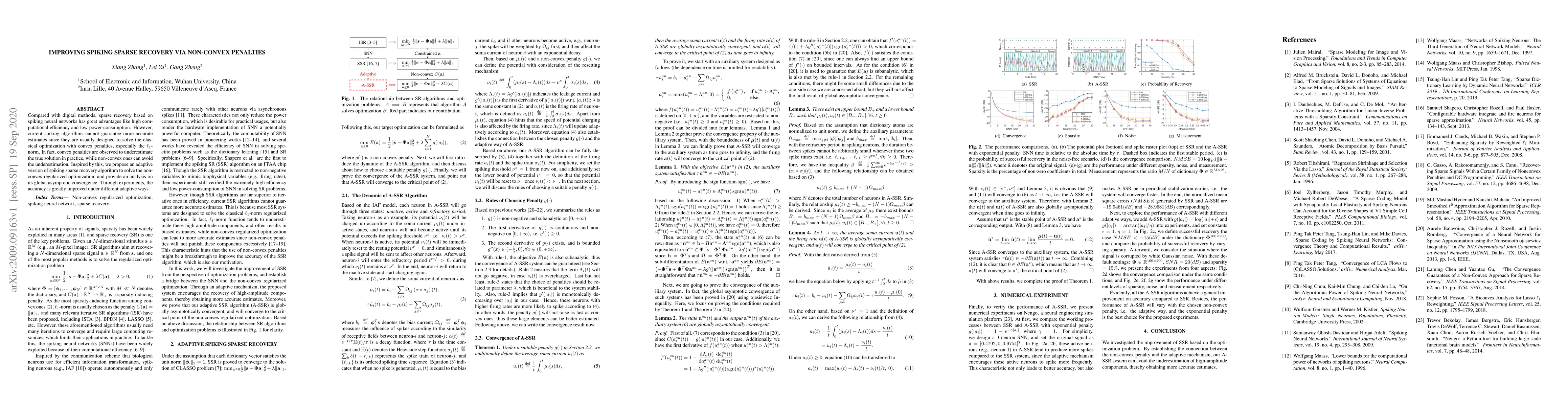 This paper proposes an adaptive spiking sparse recovery algorithm using non-convex penalties to improve estimation accuracy over existing convex penalty methods. The new method demonstrates significant improvements in accuracy and global asymptotic convergence through experimental validation.