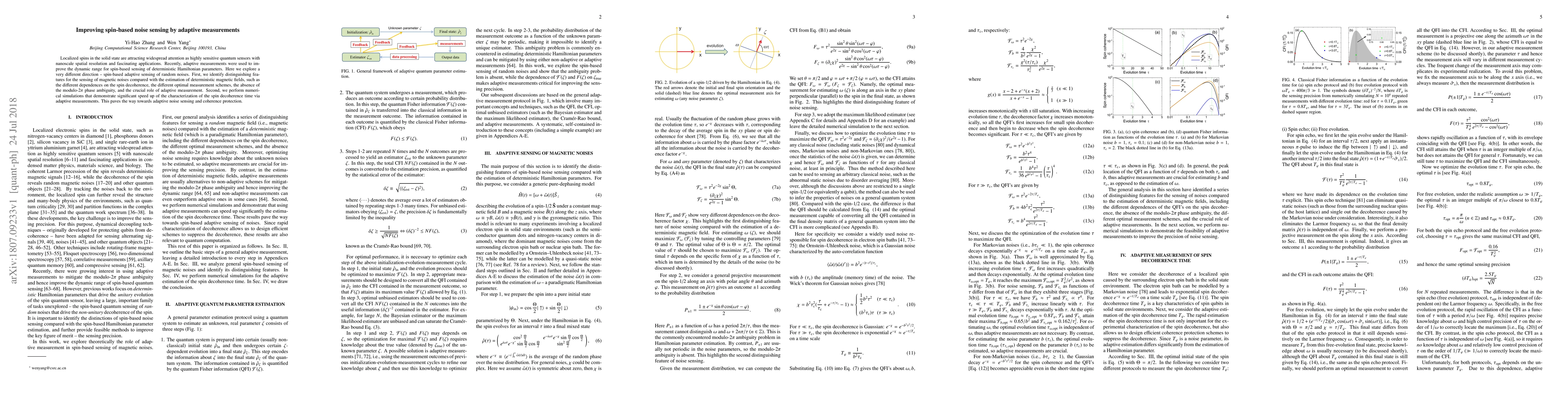 This paper investigates adaptive measurements for enhancing the sensitivity of localized spin-based quantum sensors to random magnetic noise, identifying unique features of noise sensing compared to deterministic field estimation and demonstrating a significant speed up in characterizing spin decoherence time through numerical simulations.