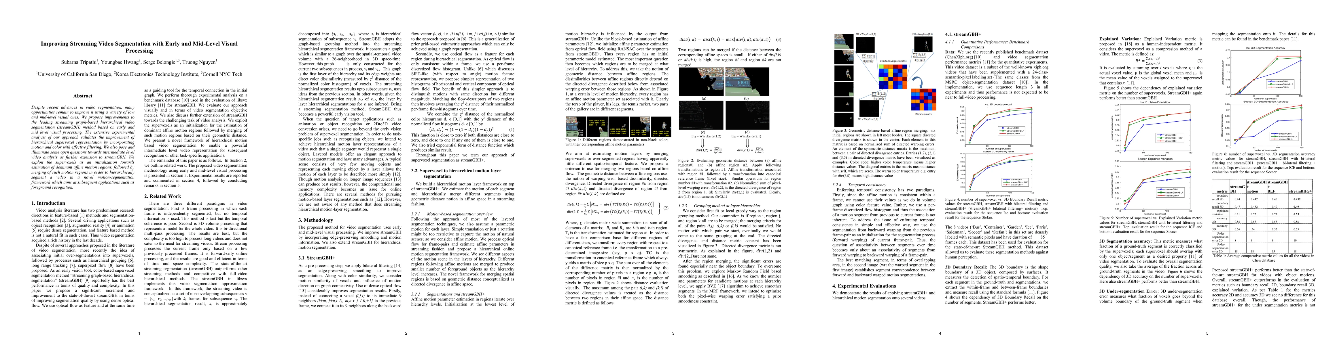 This paper proposes enhancements to the streamGBH method for streaming video segmentation by integrating early and mid-level visual cues, specifically motion and color, to improve hierarchical supervoxel representation. Experimental results show significant improvements, and the authors discuss potential extensions for intermediate level video analysis.
