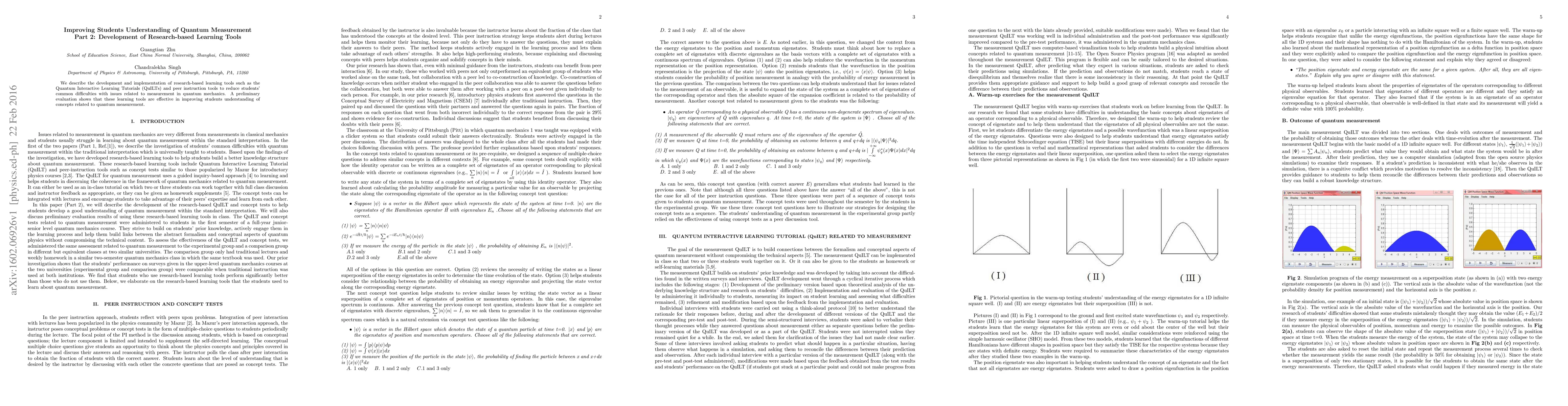 This paper details the creation of research-based learning tools, including Quantum Interactive Learning Tutorials (QuILTs) and peer instruction, aimed at addressing students' challenges with quantum measurement. Initial evaluations indicate these tools effectively enhance students' comprehension of quantum measurement concepts.