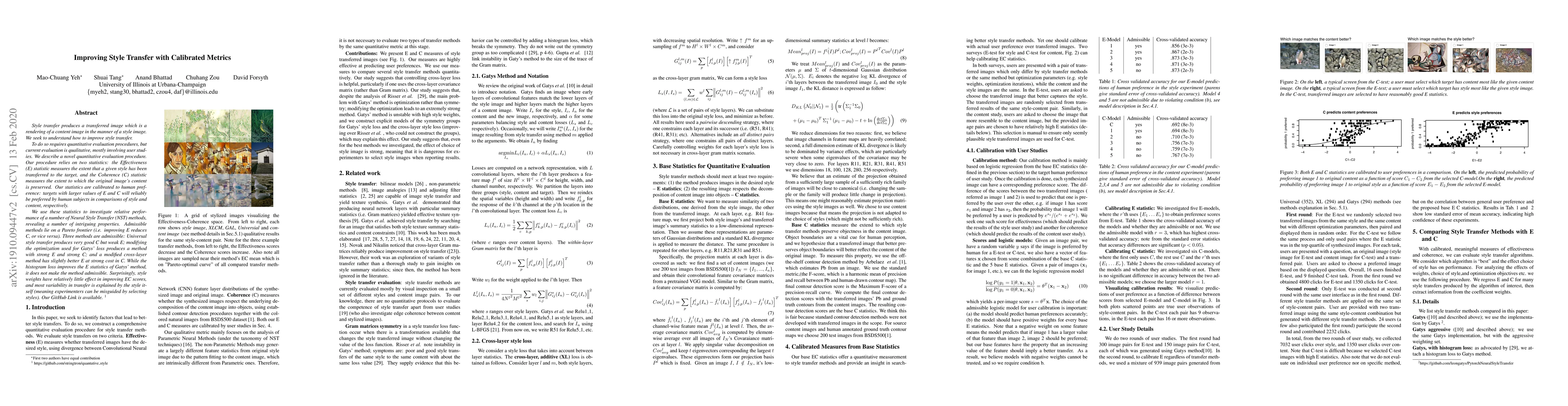 Style transfer methods produce a transferred image which is a rendering of a content image in the manner of a style image. We seek to understand how to improve style transfer. To do so requires quantitative evaluation procedures, but the current evaluation is qualitative, mostly involving user studies. We describe a novel quantitative evaluation procedure. Our procedure relies on two statistics: the Effectiveness (E) statistic measures the extent that a given style has been transferred to the target, and the Coherence (C) statistic measures the extent to which the original image's content is preserved. Our statistics are calibrated to human preference: targets with larger values of E (resp C) will reliably be preferred by human subjects in comparisons of style (resp. content). We use these statistics to investigate the relative performance of a number of Neural Style Transfer(NST) methods, revealing several intriguing properties. Admissible methods lie on a Pareto frontier (i.e. improving E reduces C or vice versa). Three methods are admissible: Universal style transfer produces very good C but weak E; modifying the optimization used for Gatys' loss produces a method with strong E and strong C; and a modified cross-layer method has slightly better E at strong cost in C. While the histogram loss improves the E statistics of Gatys' method, it does not make the method admissible. Surprisingly, style weights have relatively little effect in improving EC scores, and most variability in the transfer is explained by the style itself (meaning experimenters can be misguided by selecting styles).