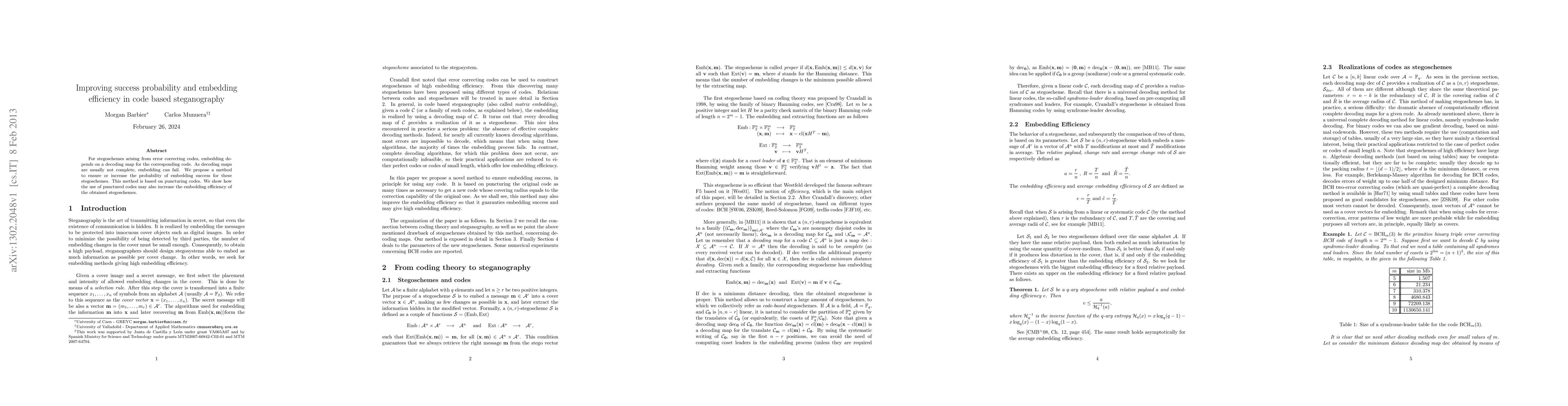 Researchers propose a method using punctured codes to increase embedding success probability and efficiency in steganography schemes based on error-correcting codes.
