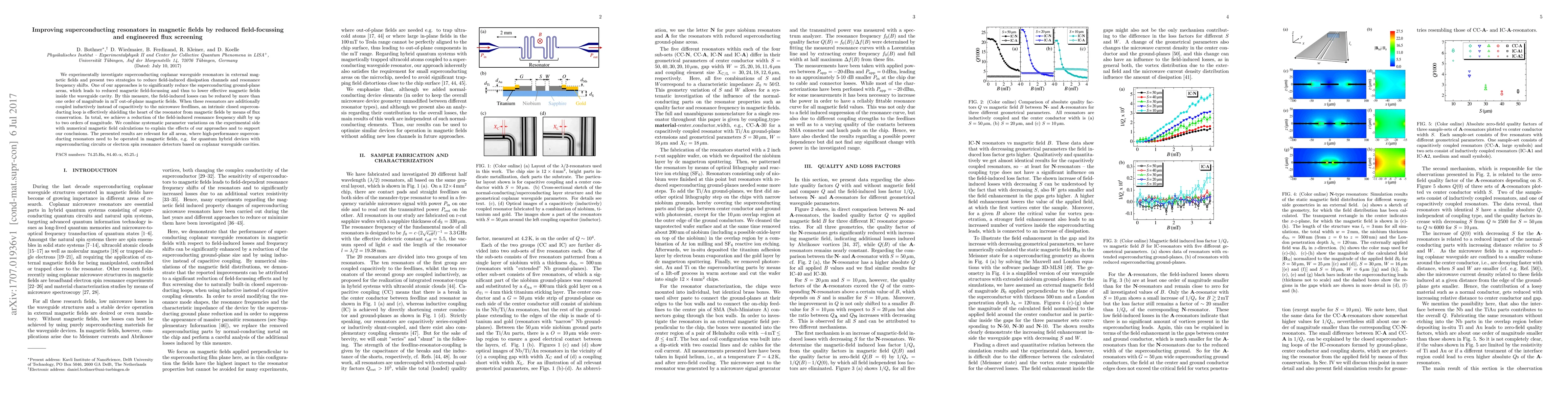 This paper investigates superconducting coplanar waveguide resonators in magnetic fields, proposing methods to reduce field-induced dissipation and frequency shifts. By minimizing ground-plane areas and employing inductive coupling, magnetic field-focussing is reduced, achieving significant loss reduction and frequency shift minimization.