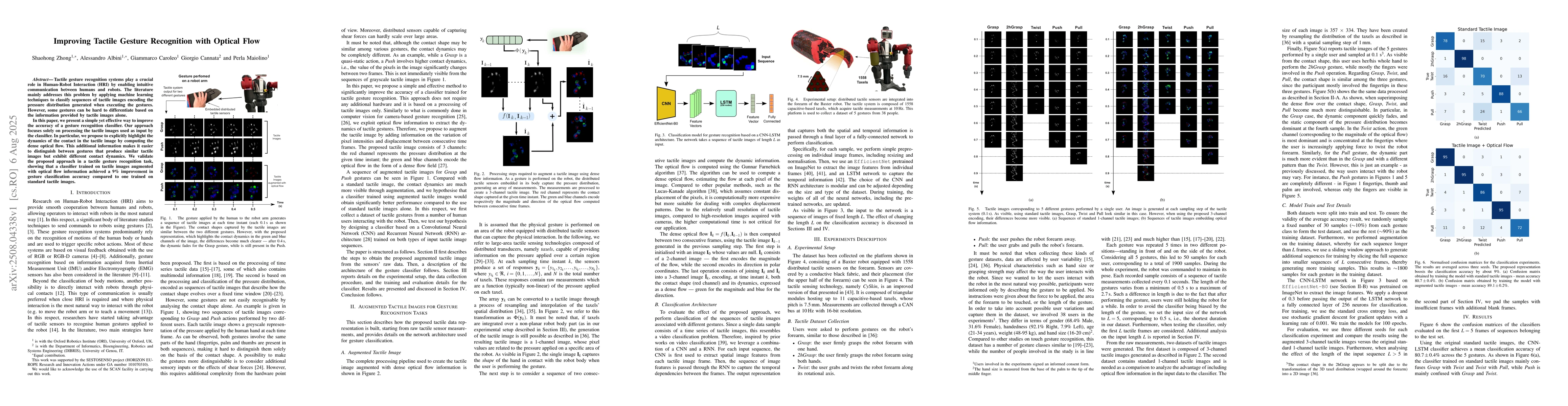 Tactile gesture recognition systems play a crucial role in Human-Robot Interaction (HRI) by enabling intuitive communication between humans and robots. The literature mainly addresses this problem by applying machine learning techniques to classify sequences of tactile images encoding the pressure distribution generated when executing the gestures. However, some gestures can be hard to differentiate based on the information provided by tactile images alone. In this paper, we present a simple yet effective way to improve the accuracy of a gesture recognition classifier. Our approach focuses solely on processing the tactile images used as input by the classifier. In particular, we propose to explicitly highlight the dynamics of the contact in the tactile image by computing the dense optical flow. This additional information makes it easier to distinguish between gestures that produce similar tactile images but exhibit different contact dynamics. We validate the proposed approach in a tactile gesture recognition task, showing that a classifier trained on tactile images augmented with optical flow information achieved a 9% improvement in gesture classification accuracy compared to one trained on standard tactile images.