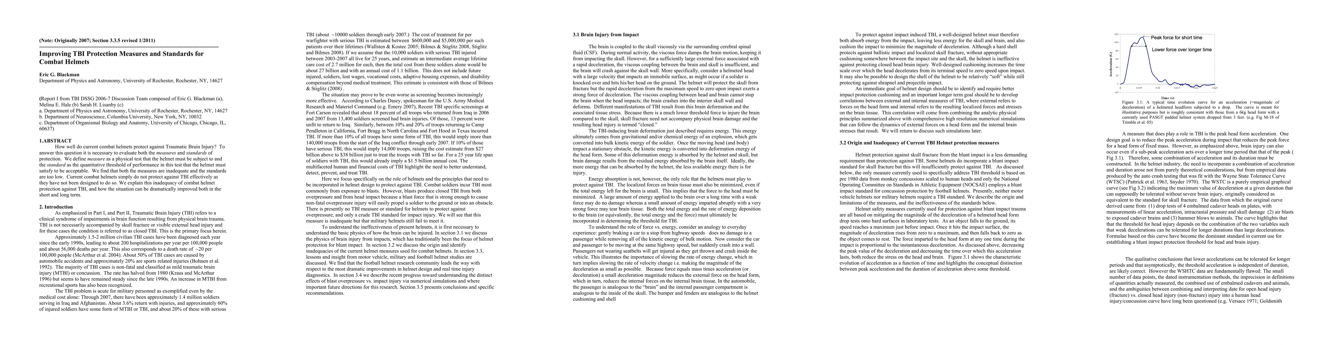 How well do current combat helmets protect against Traumatic Brain Injury? To answer this question it is necessary to evaluate both the measures and standards of protection. We define measure as a physical test that the helmet must be subject to and the standard as the quantitative threshold of performance in this test that the helmet must satisfy to be acceptable. We find that both the measures are inadequate and the standards are too low. Current combat helmets simply do not protect against TBI effectively as they have not been designed to do so. We explain this inadequacy of combat helmet protection against TBI, and how the situation can be dramatically improved both in the short and long term.