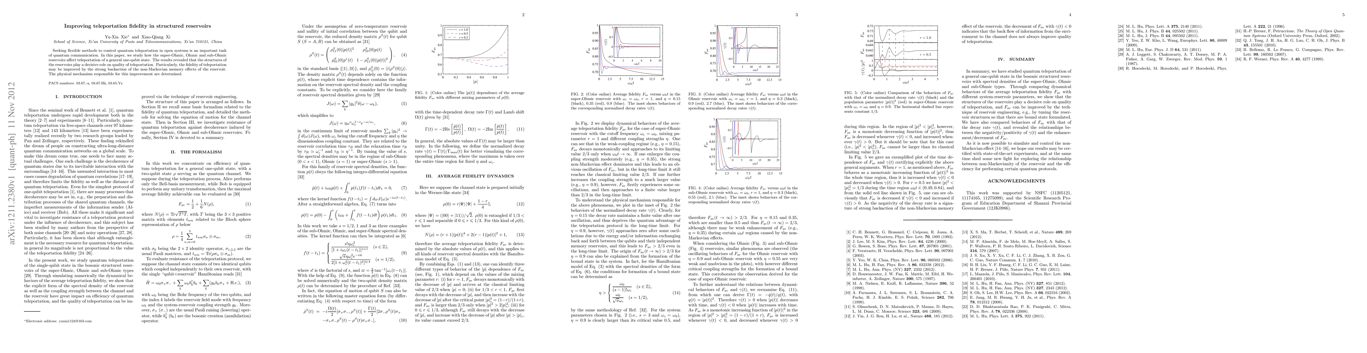 This paper investigates the impact of different types of structured reservoirs on the fidelity of quantum teleportation in open systems, finding that non-Markovian memory effects can enhance teleportation quality through strong backaction, thereby determining the underlying physical mechanisms.