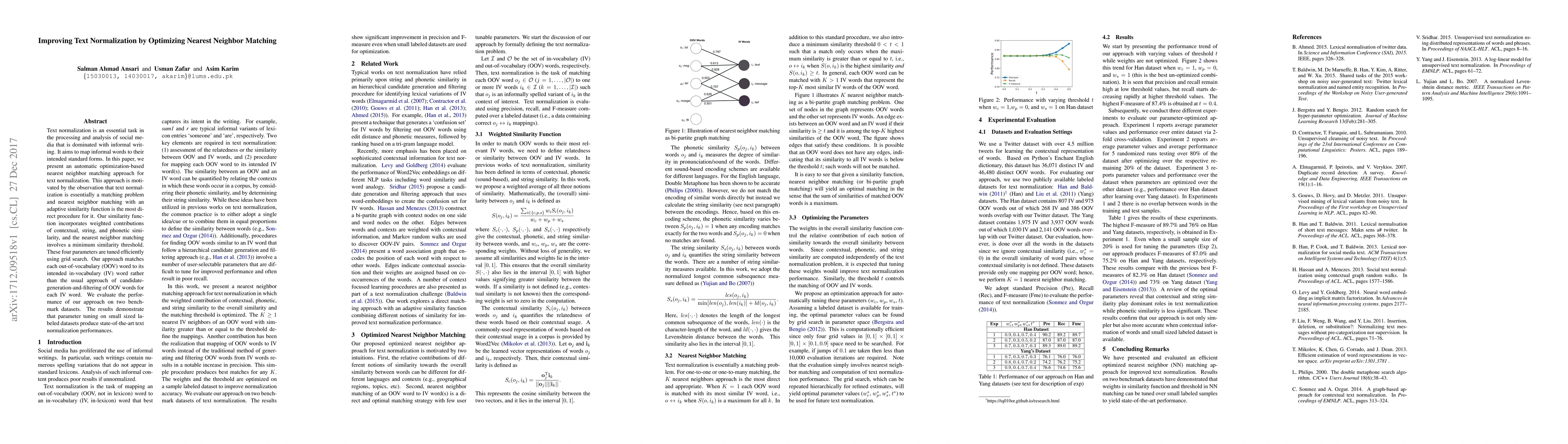 This paper proposes an automatic optimization-based nearest neighbor matching approach for text normalization in informal social media writing. The method tunes four parameters using grid search to achieve state-of-the-art performance on benchmark datasets, demonstrating the potential for easy construction of evolving domain-specific lexicons.