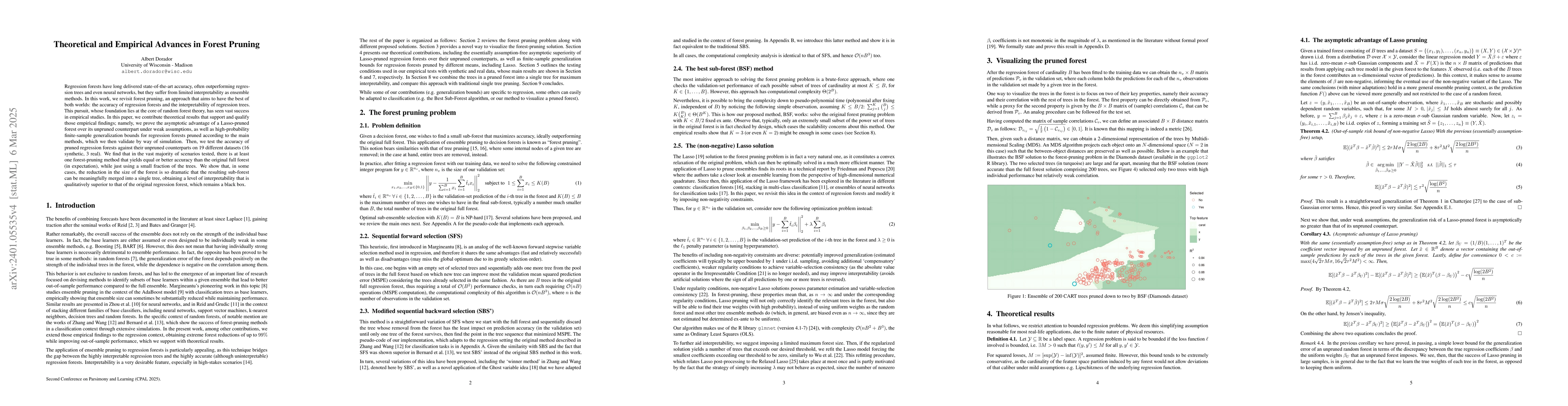 This paper proposes two forest-pruning methods to enhance the accuracy and interpretability of random forests by selecting an optimal sub-forest. The methods outperform existing pruning techniques in accuracy while maintaining a smaller subset of trees, thus improving interpretability.