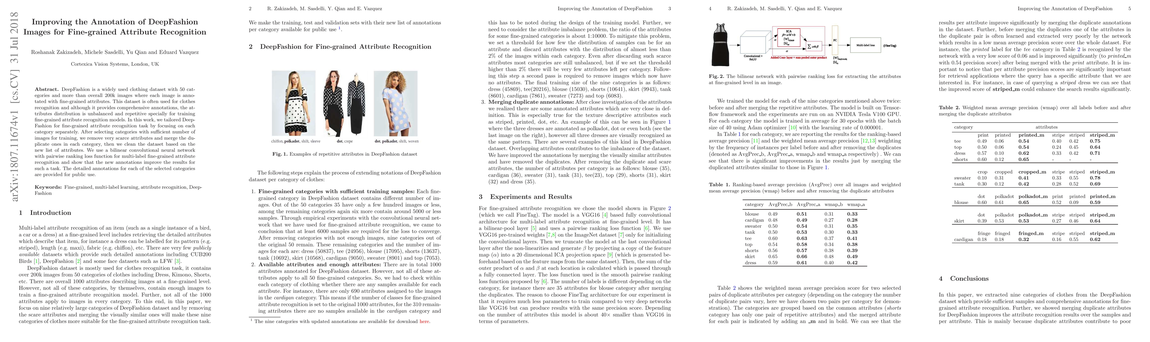 DeepFashion is a widely used clothing dataset with 50 categories and more than overall 200k images where each image is annotated with fine-grained attributes. This dataset is often used for clothes recognition and although it provides comprehensive annotations, the attributes distribution is unbalanced and repetitive specially for training fine-grained attribute recognition models. In this work, we tailored DeepFashion for fine-grained attribute recognition task by focusing on each category separately. After selecting categories with sufficient number of images for training, we remove very scarce attributes and merge the duplicate ones in each category, then we clean the dataset based on the new list of attributes. We use a bilinear convolutional neural network with pairwise ranking loss function for multi-label fine-grained attribute recognition and show that the new annotations improve the results for such a task. The detailed annotations for each of the selected categories are provided for public use.