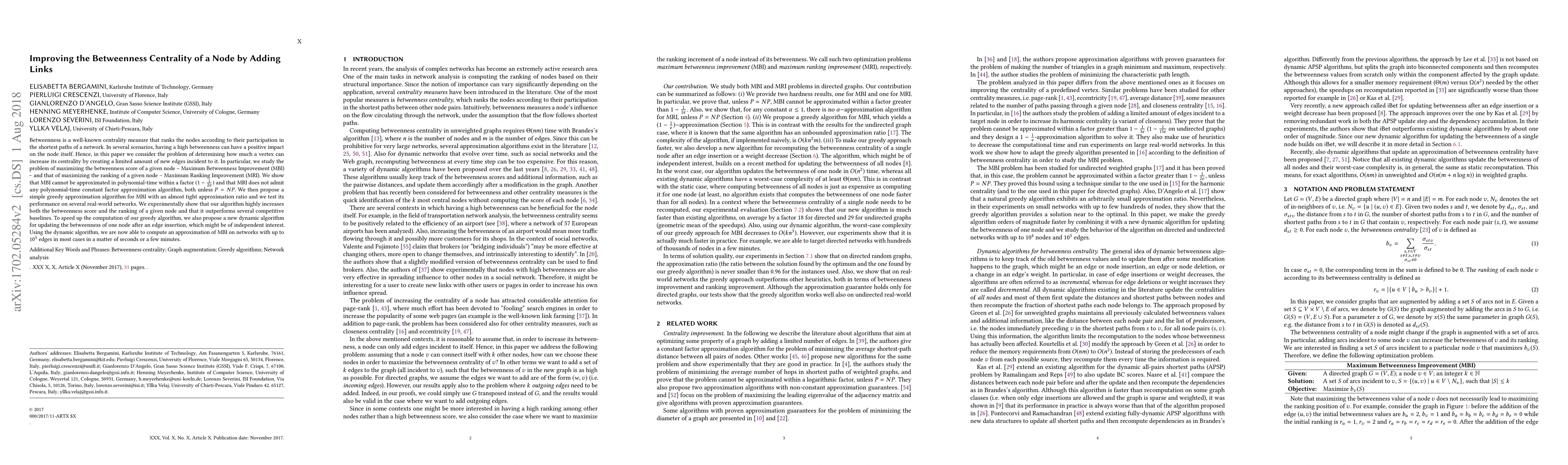 This paper explores the problem of enhancing a node's betweenness centrality by strategically adding new edges. It proves that maximizing betweenness and ranking improvements are computationally hard, but proposes a simple greedy algorithm with strong performance on real-world networks. Additionally, a dynamic algorithm for updating betweenness after edge insertions enables efficient computation on large-scale networks.