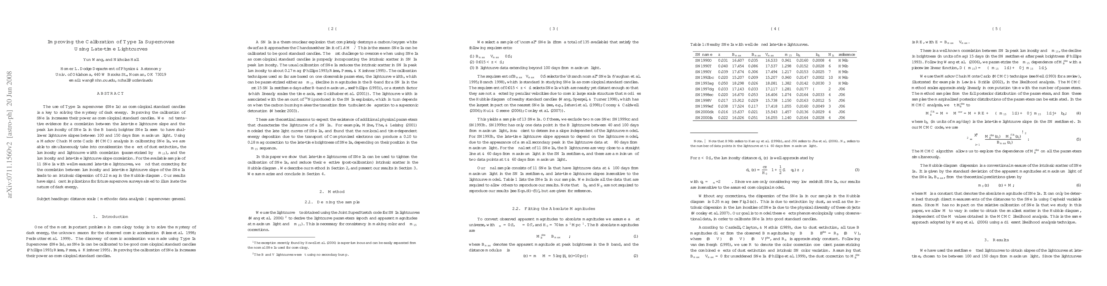 This paper investigates the calibration of Type Ia supernovae (SNe Ia) as cosmological standard candles, finding a correlation between late-time lightcurve slopes and peak luminosity. The study uses a Markov Chain Monte Carlo analysis to correct for dust extinction and other factors, reducing intrinsic dispersion and improving the use of SNe Ia in dark energy research.