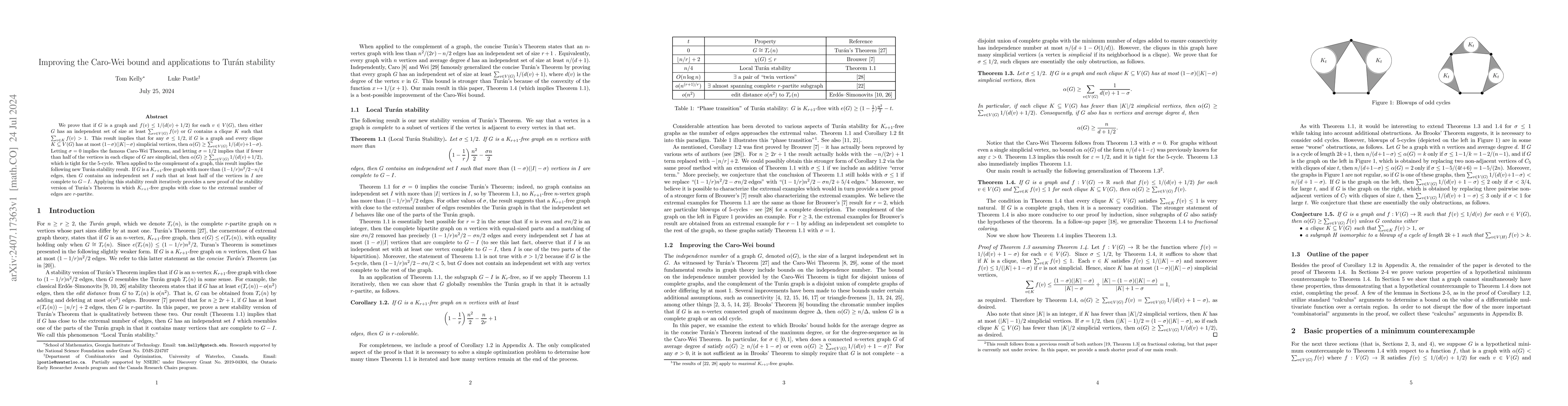 This paper improves the Caro-Wei bound by showing that a graph either has a large independent set or a clique with high simplicial vertex density. This leads to a Turán stability result indicating that $K_{r + 1}$-free graphs with many edges contain independent sets where half the vertices are complete to the rest, proving a strengthened version of Turán's Theorem.