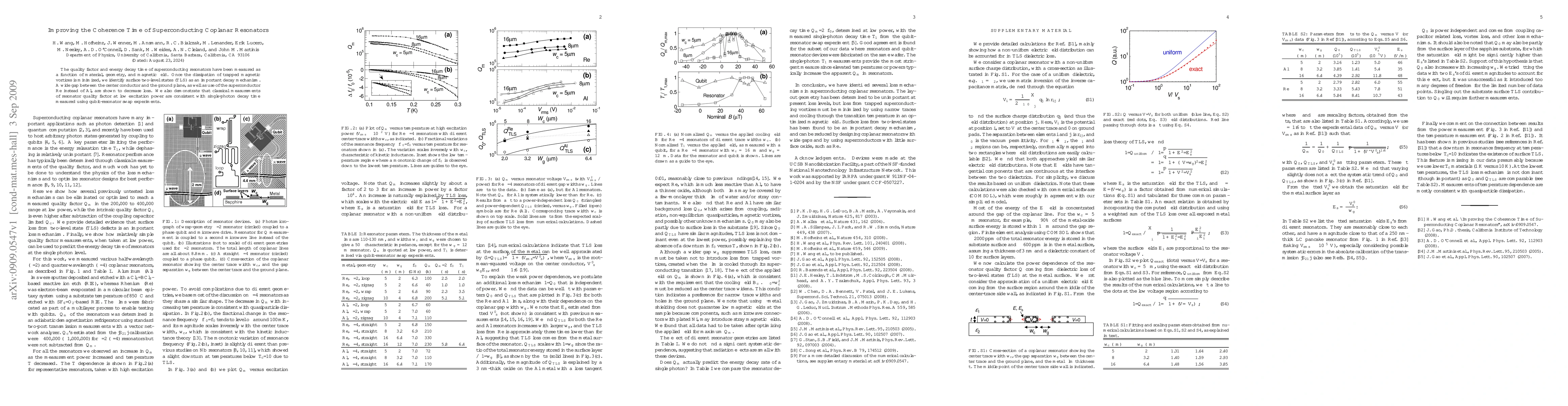 This study investigates the coherence time of superconducting coplanar resonators by analyzing the impact of material, geometry, and magnetic field on their quality factor. The research finds that minimizing magnetic vortex dissipation and employing a wider gap and Re superconductor instead of Al significantly reduce loss, highlighting surface two-level states as a key decay mechanism.