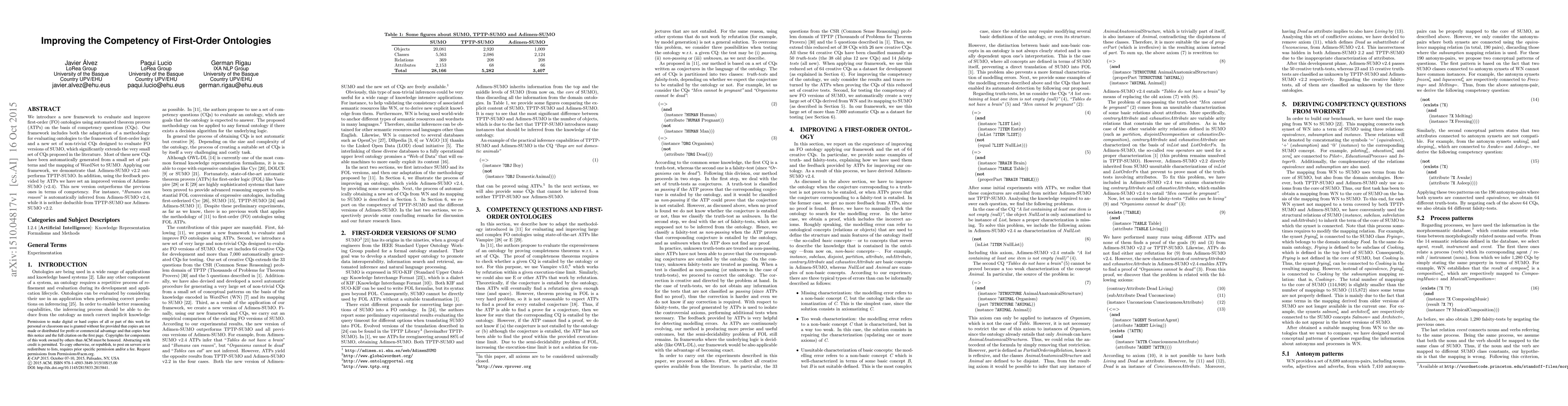 We introduce a new framework to evaluate and improve first-order (FO) ontologies using automated theorem provers (ATPs) on the basis of competency questions (CQs). Our framework includes both the adaptation of a methodology for evaluating ontologies to the framework of first-order logic and a new set of non-trivial CQs designed to evaluate FO versions of SUMO, which significantly extends the very small set of CQs proposed in the literature. Most of these new CQs have been automatically generated from a small set of patterns and the mapping of WordNet to SUMO. Applying our framework, we demonstrate that Adimen-SUMO v2.2 outperforms TPTP-SUMO. In addition, using the feedback provided by ATPs we have set an improved version of Adimen-SUMO (v2.4). This new version outperforms the previous ones in terms of competency. For instance, "Humans can reason" is automatically inferred from Adimen-SUMO v2.4, while it is neither deducible from TPTP-SUMO nor Adimen-SUMO v2.2.