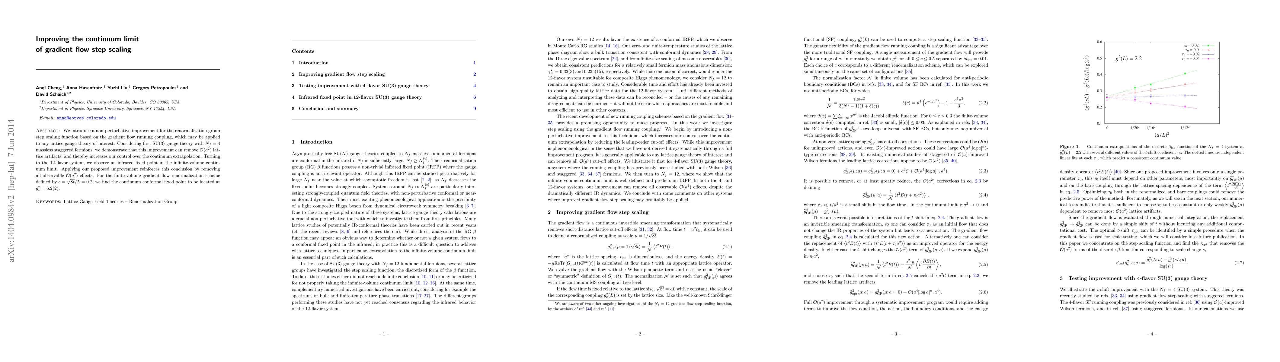 We introduce a non-perturbative improvement for the renormalization group step scaling function based on the gradient flow running coupling, which may be applied to any lattice gauge theory of interest. Considering first SU(3) gauge theory with $N_f = 4$ massless staggered fermions, we demonstrate that this improvement can remove $O(a^2)$ lattice artifacts, and thereby increases our control over the continuum extrapolation. Turning to the 12-flavor system, we observe an infrared fixed point in the infinite-volume continuum limit. Applying our proposed improvement reinforces this conclusion by removing all observable $O(a^2)$ effects. For the finite-volume gradient flow renormalization scheme defined by $c = \sqrt{8t} / L = 0.2$, we find the continuum conformal fixed point to be located at $g_\star^2 = 6.2(2)$