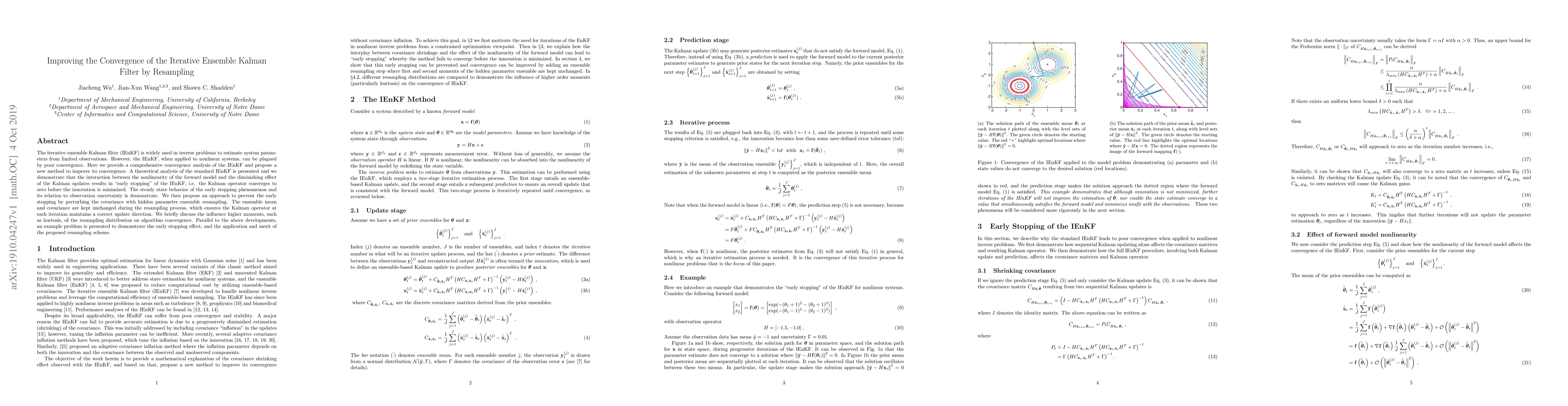 The iterative ensemble Kalman filter (IEnKF) is widely used in inverse problems to estimate system parameters from limited observations. However, the IEnKF, when applied to nonlinear systems, can be plagued by poor convergence. Here we provide a comprehensive convergence analysis of the IEnKF and propose a new method to improve its convergence. A theoretical analysis of the standard IEnKF is presented and we demonstrate that the interaction between the nonlinearity of the forward model and the diminishing effect of the Kalman updates results in "early stopping" of the IEnKF, i.e. the Kalman operator converges to zero before the innovation is minimized. The steady state behavior of the early stopping phenomenon and its relation to observation uncertainty is demonstrate. We then propose an approach to prevent the early stopping by perturbing the covariance with hidden parameter ensemble resampling. The ensemble mean and covariance are kept unchanged during the resampling process, which ensures the Kalman operator at each iteration maintains a correct update direction. We briefly discuss the influence higher moments, such as kurtosis, of the resampling distribution on algorithm convergence. Parallel to the above developments, an example problem is presented to demonstrate the early stopping effect, and the application and merit of the proposed resampling scheme.