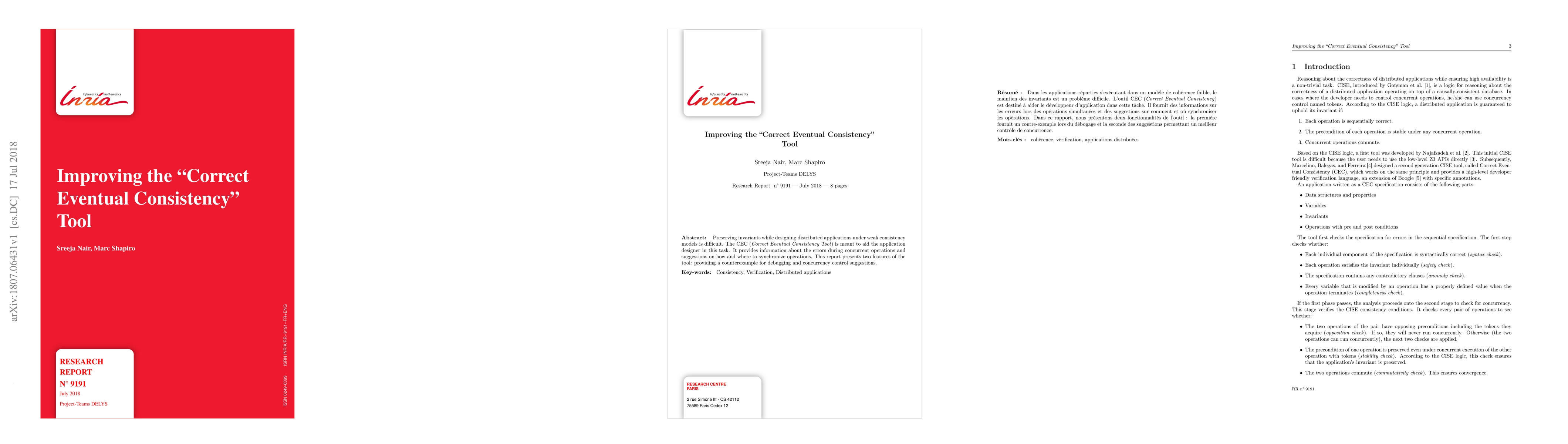 Preserving invariants while designing distributed applications under weak consistency models is difficult. The CEC (Correct Eventual Consistency Tool) is meant to aid the application designer in this task. It provides information about the errors during concurrent operations and suggestions on how and where to synchronize operations. This report presents two features of the tool: providing a counterexample for debugging and concurrency control suggestions.