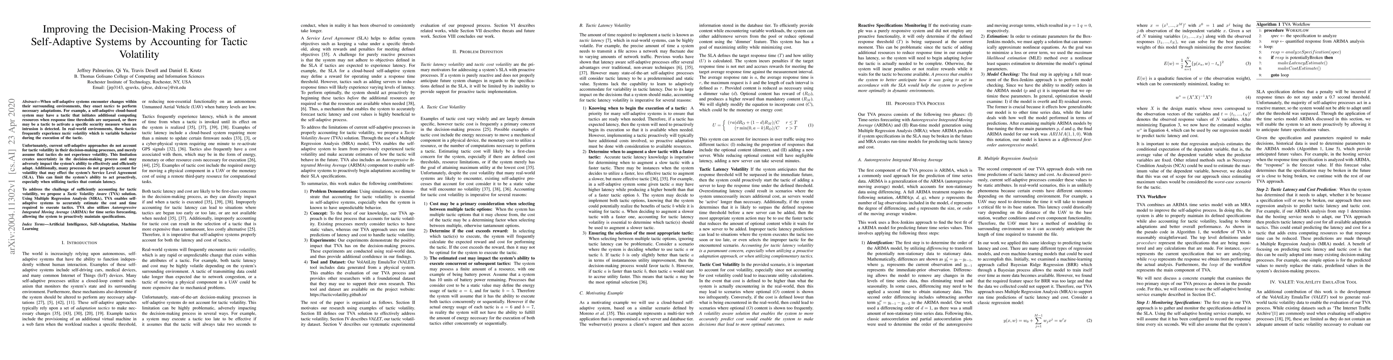 This paper proposes a Tactic Volatility Aware (TVA) solution to improve the decision-making process in self-adaptive systems by accounting for tactic volatility. TVA employs Multiple Regression Analysis and ARIMA for time series forecasting to estimate execution costs and times, thereby enhancing the system's proactive adaptation and compliance with Service Level Agreements.