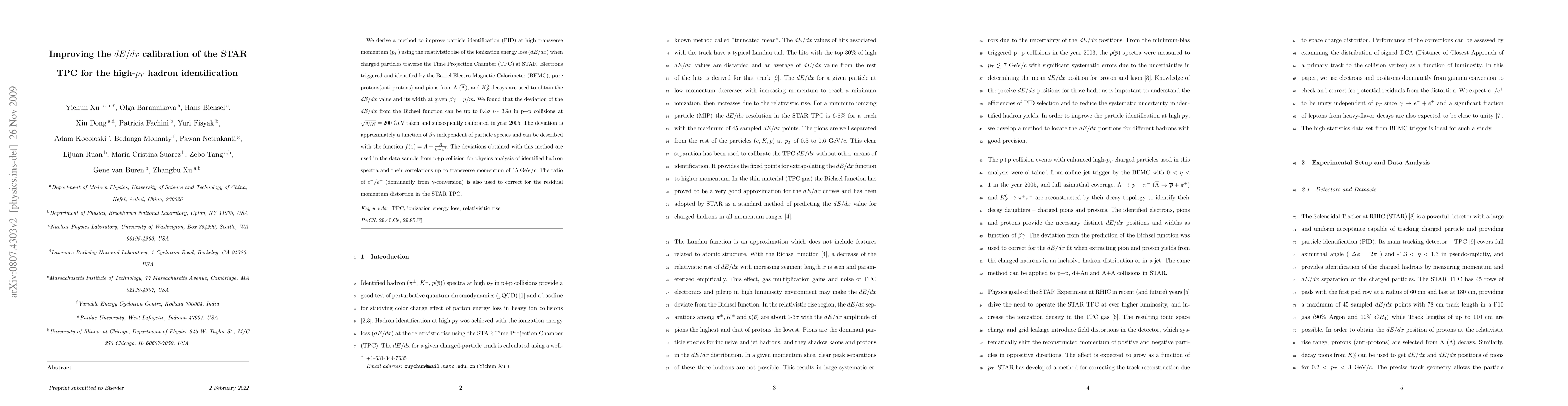 This paper presents a method to enhance the $dE/dx$ calibration in the STAR TPC for high-$p_T$ hadron identification, using the relativistic rise of ionization energy loss. The calibration corrects deviations up to $0.4\sigma$ and improves the analysis of identified hadron spectra and correlations up to 15 GeV/$c$.