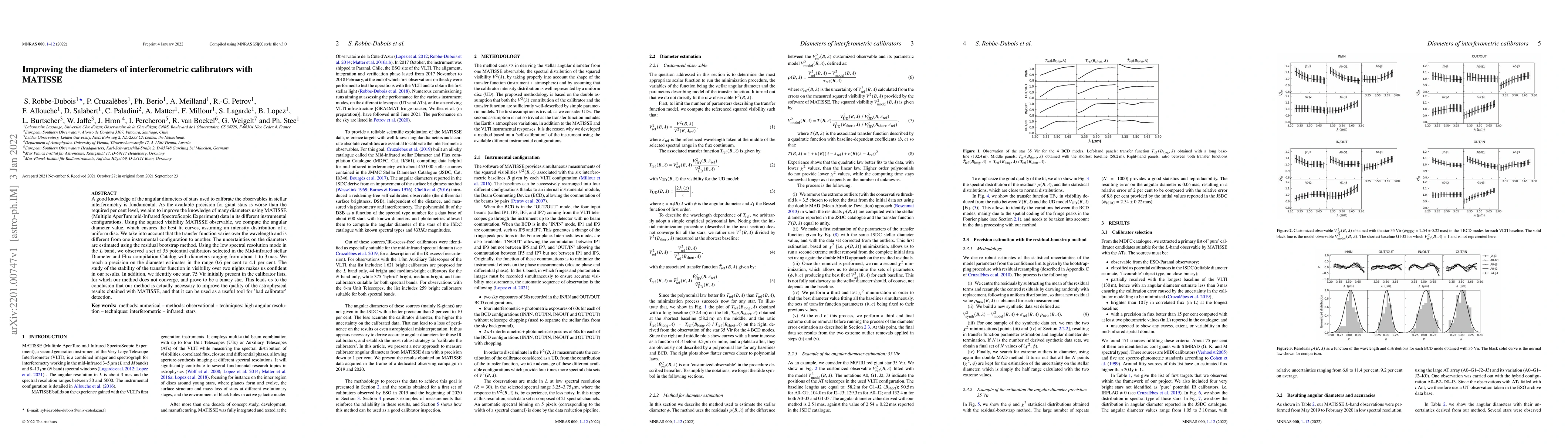 This paper aims to enhance the precision of angular diameters for interferometric calibrators using MATISSE data, achieving diameter estimates with a precision of 0.6% to 4.1%. The study identifies 75 Vir as a binary star, demonstrating the method's utility in detecting 'bad calibrators'.