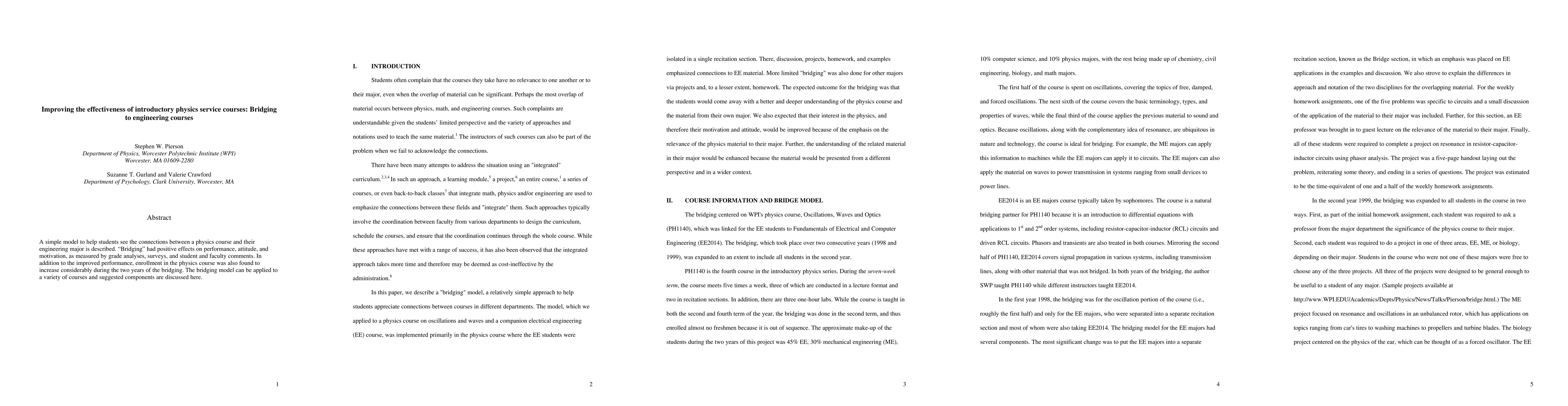 A 'bridging' model helped students see connections between a physics course and their engineering major, improving performance, attitude, and motivation.