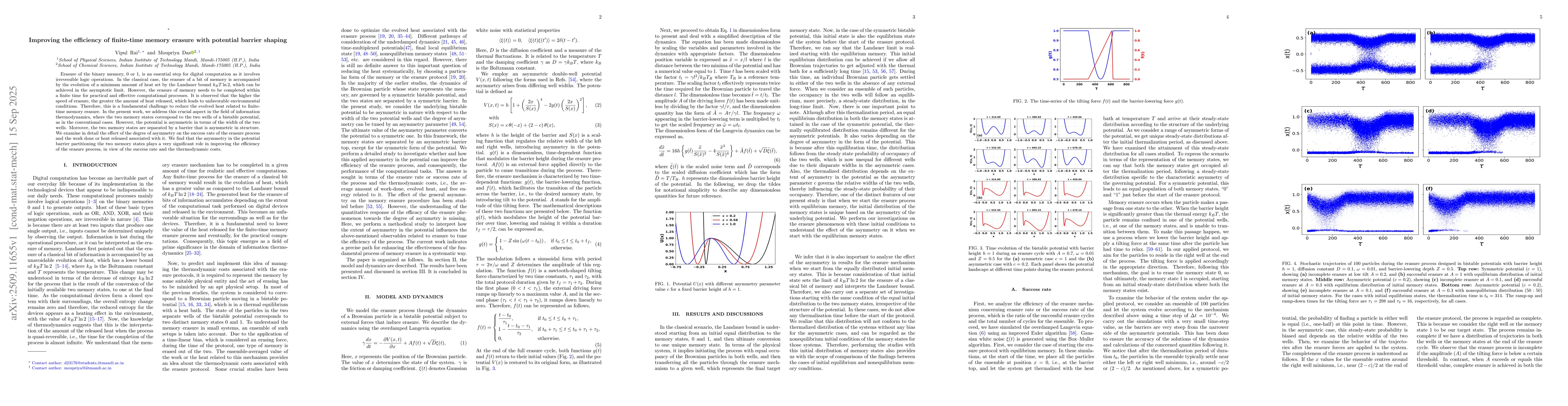 The work introduces a novel framework for analyzing information erasure in asymmetric potentials, integrating advanced thermodynamic principles with computational modeling to quantify deviations from the Landauer bound.