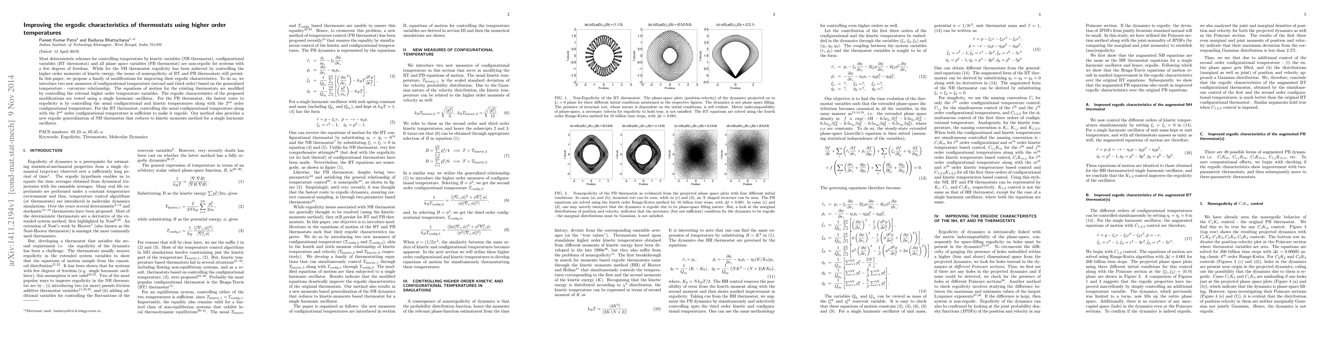 Most deterministic schemes for controlling temperature by kinetic variables (NH thermsotat), configurational variables (BT thermostat) and all phase space variables (PB thermostat) are non-ergodic for systems with a few degrees of freedom. While for the NH thermostat ergodicity has been achieved by controlling the higher order moments of kinetic energy, the issues of nonergodicity of BT and PB thermostats still persist. In this paper, we propose a family of modifications for improving their ergodic characteristics. To do so, we introduce two new measures of configurational temperature (second and third order) based on the generalized temperature - curvature relationship. The equations of motion for the existing thermostats are modified by controlling the relevant higher order temperature variables. The ergodic characteristics of the proposed modifications are tested using a single harmonic oscillator. For the PB thermostat, the fastest route to ergodicity is by controlling the usual configurational and kinetic temperatures along with the $2^{\text{nd}}$ order configurational temperature. For the BT thermostat, controlling the usual configurational temperature along with the $2^{\text{nd}}$ order configurational temperature is sufficient to make it ergodic. Our method also provides a new ergodic generalization of NH thermostat that reduces to kinetic moments method for a single harmonic oscillator.